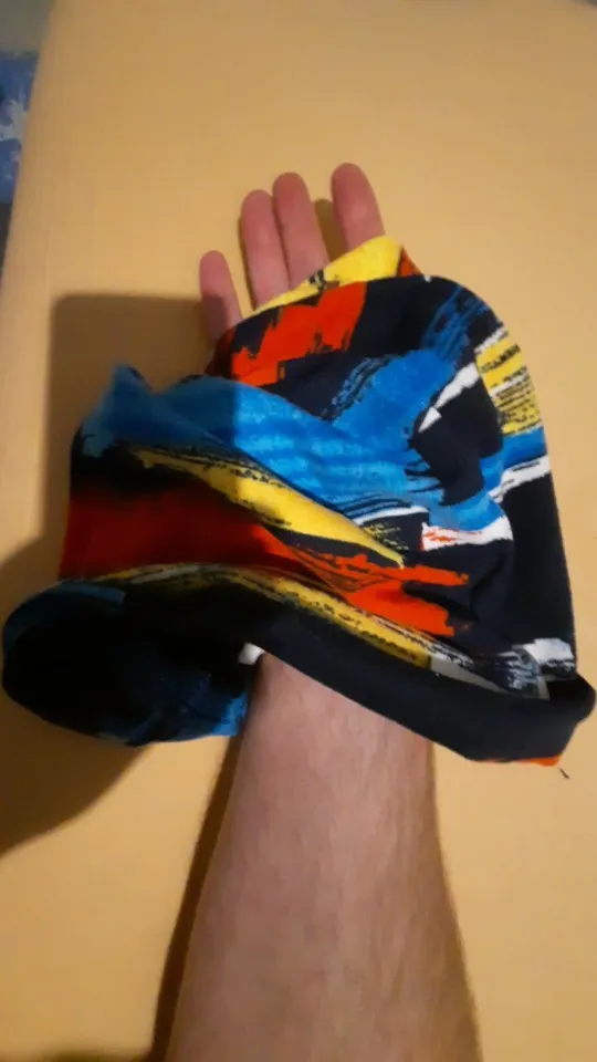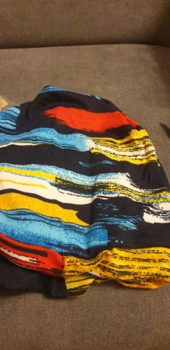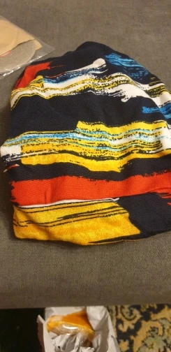 Это не шляпа. Это больше шарф. Выглядит тепло, яркие цвета. Он довольно большой.