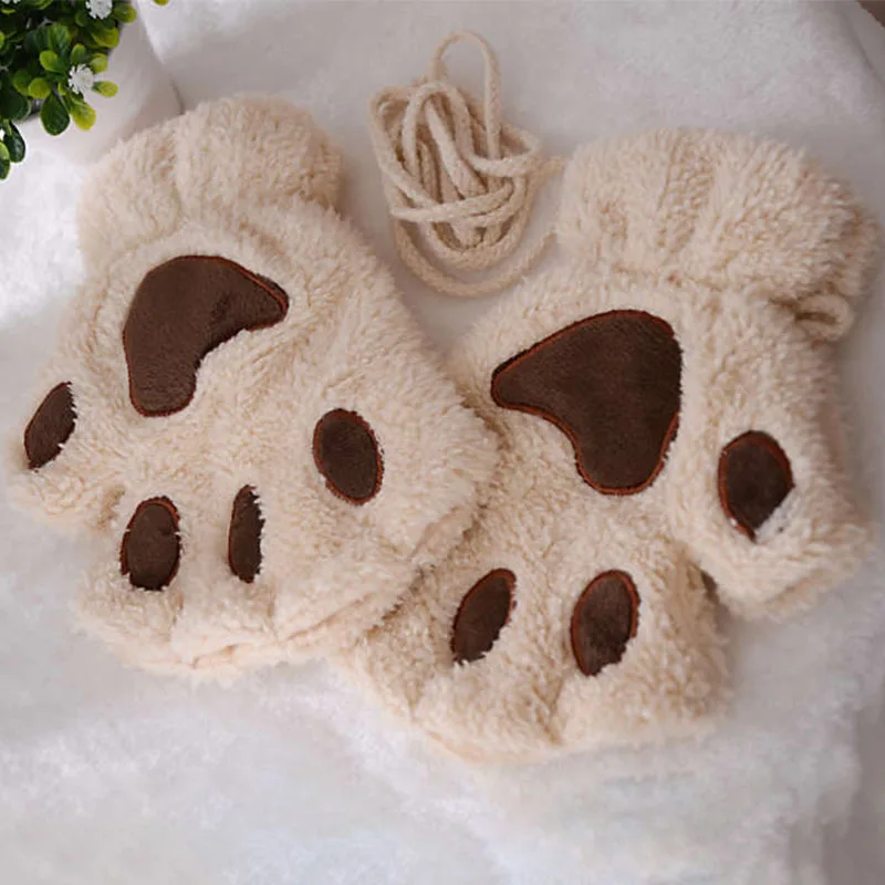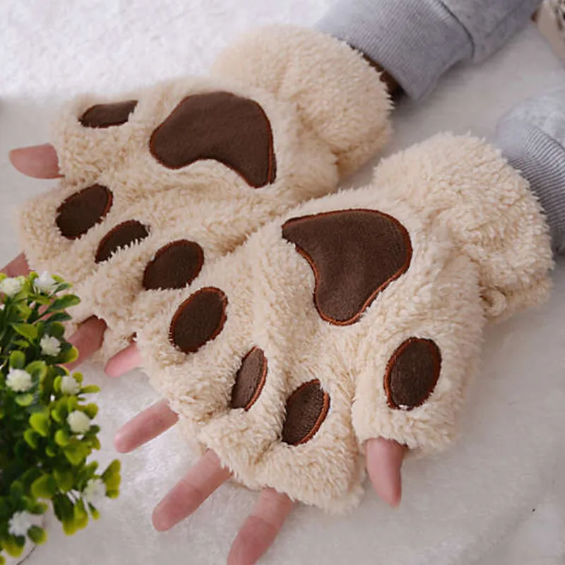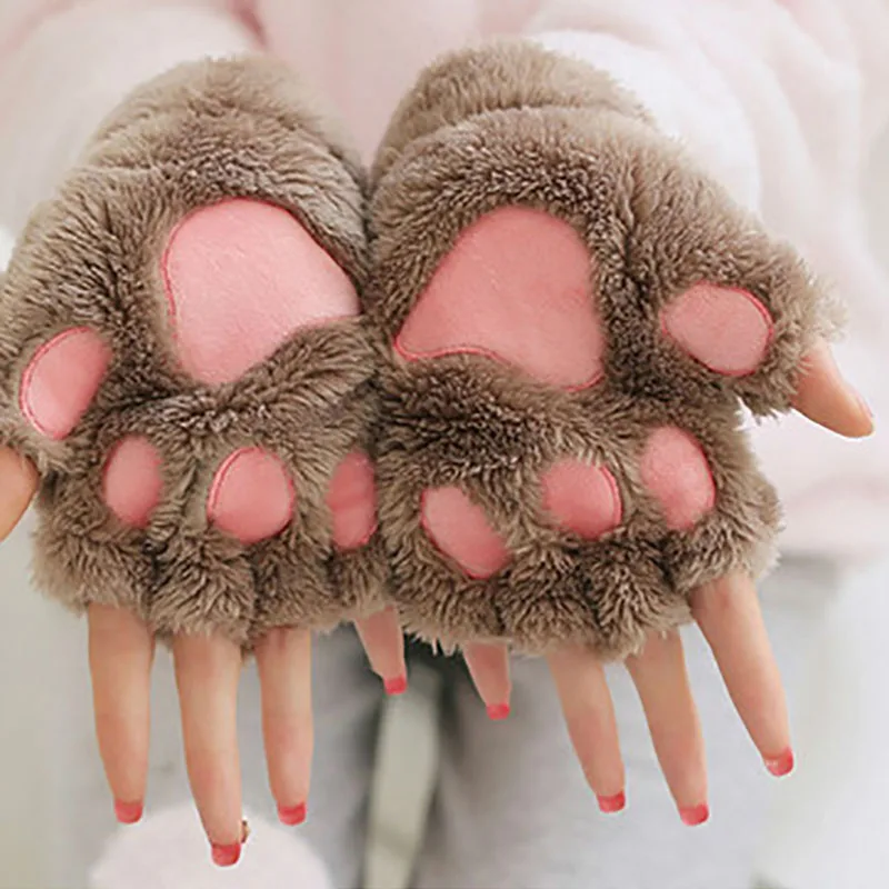 Перчатки женские, с кошачьими когтями, плюшевые, без пальцев