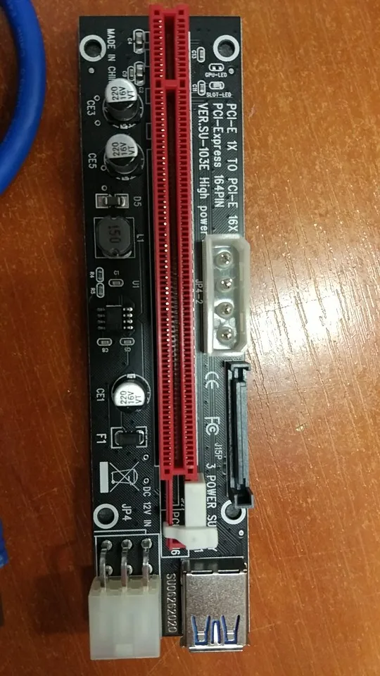 Райзер 4-контактный 6-контактный SATA Power PCI Express 16X Slot Riser Card USB 3,0 PCI-E PCI-Express 1x до 16x PCIE Riser для майнинга биткоинов BTC