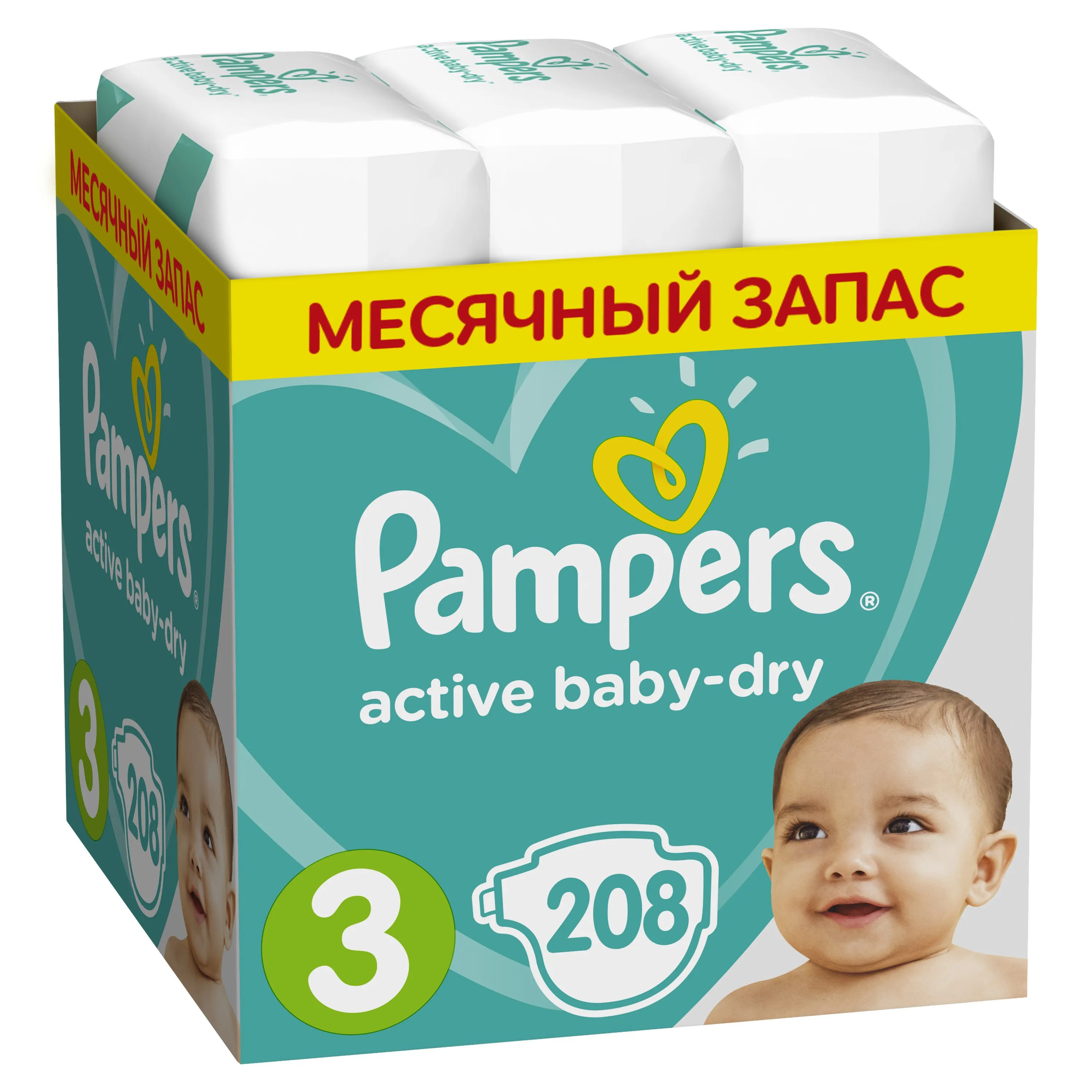 Подгузники Pampers Active Baby-Dry 610 кг, размер 3, 208 шт