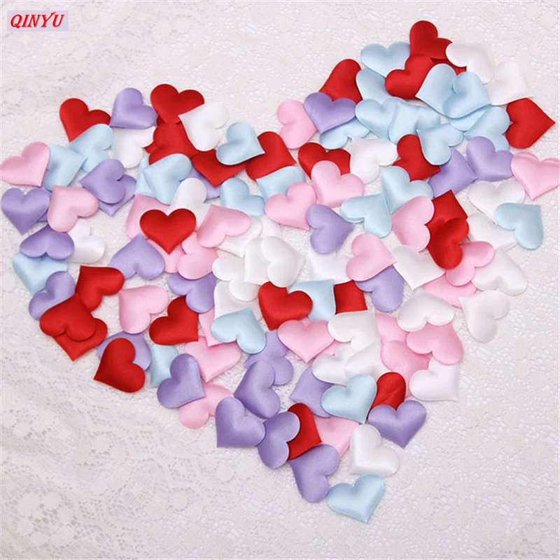 100 шт.лот, 3 см губка, сатиновая ткань, лепестки в форме сердца, конфетти, Настольная кровать, лепестки в форме сердца, украшения на свадьбу, День Святого Валентина, 9Z