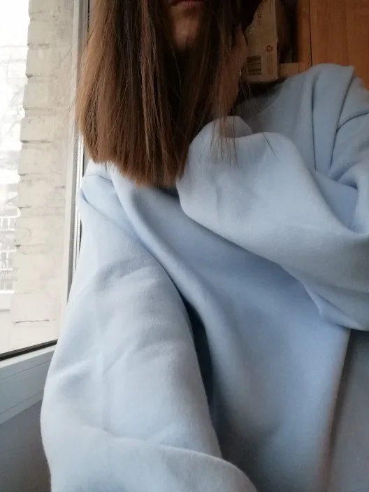 Очень приятный свитшот Цвет,качество,мягкость-отлично. Хорошо сел на рост 176 см 96/74/96. И длина,и рукава отличные. Спасибо продавцу
