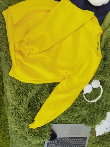 Качество отличное. Нет никаких торчащих ниток, пятен и т.д. Объемная, выглядит как оверсайз. Достаточно тёплая. Но единственное, что мне не понравилось - цвет. Цвет ближе к пастельно-желтому. Взяла бы ещё такую же, только другого цвета.
