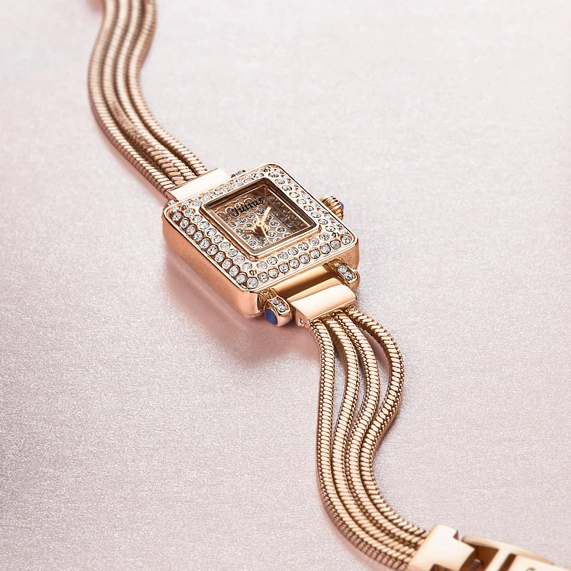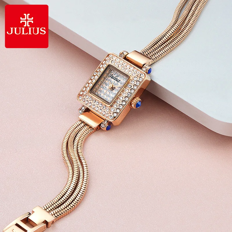 Женские маленькие часы с кристаллами, японские кварцевые часы, модный браслет с кисточками и цепочкой в виде змеи, подарочные часы для девочек, коробка Julius