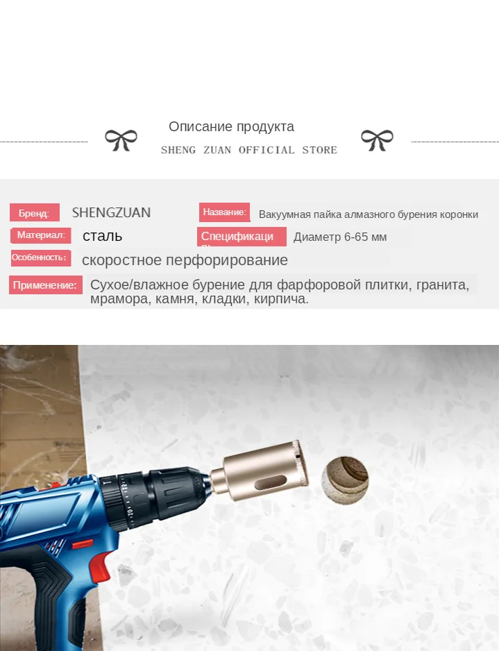 Алмазное паяное сверло, устойчивое к мраморной плитке, керамическая плитка, используемая в граните, мраморе, скале, камне, Ракушке и т. д.