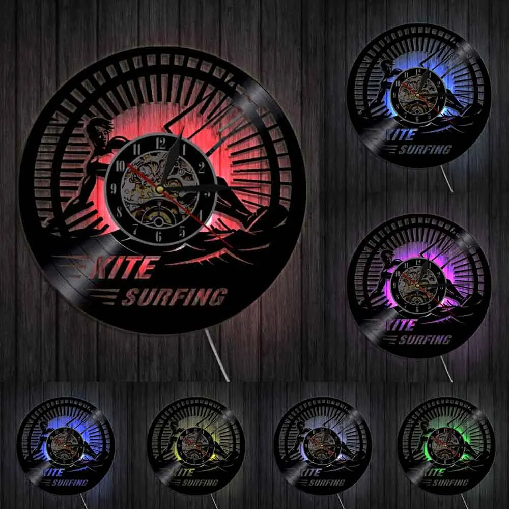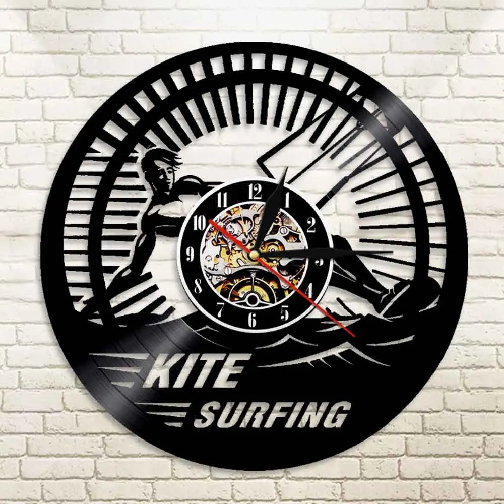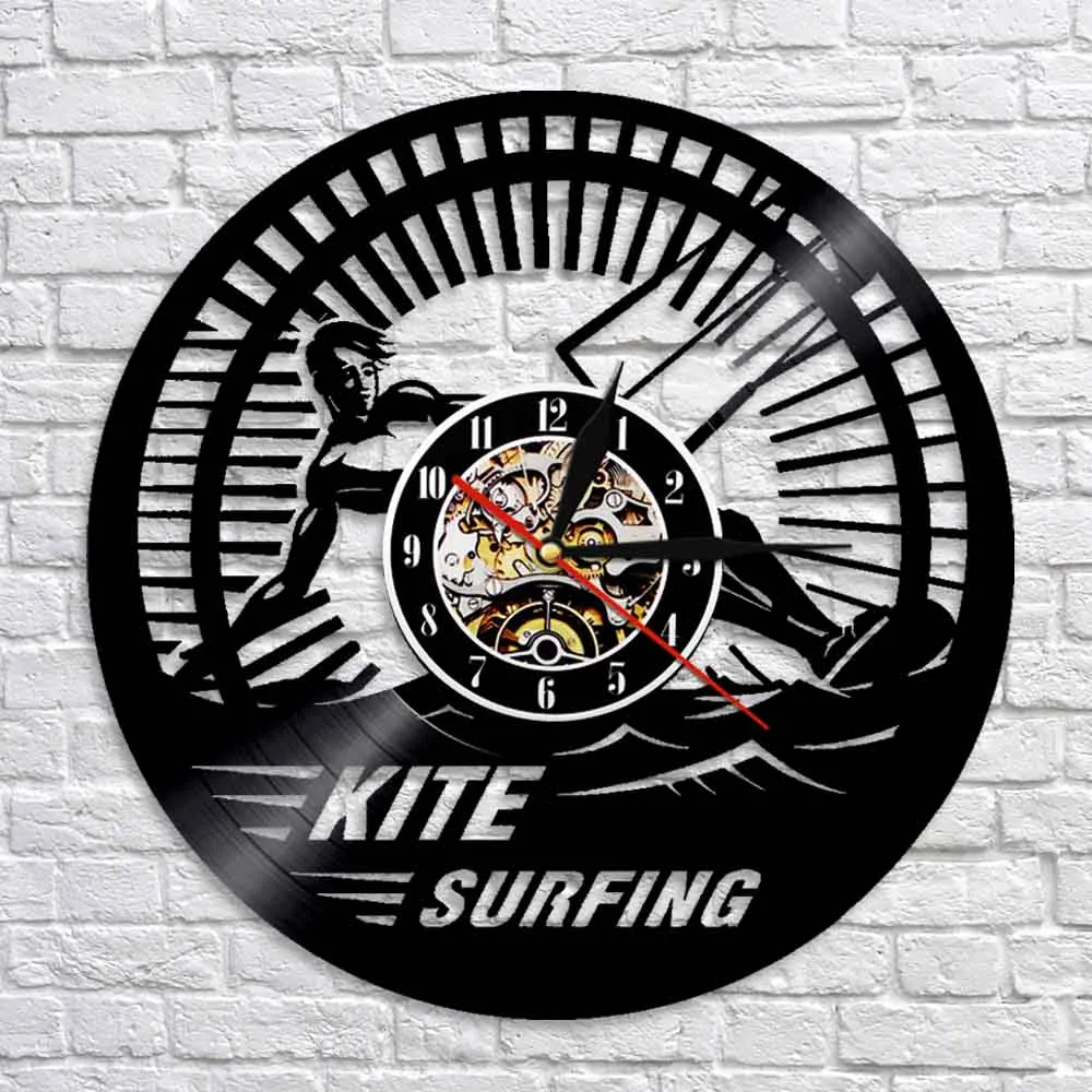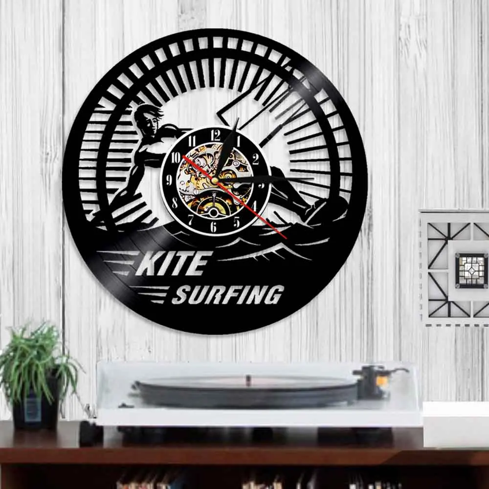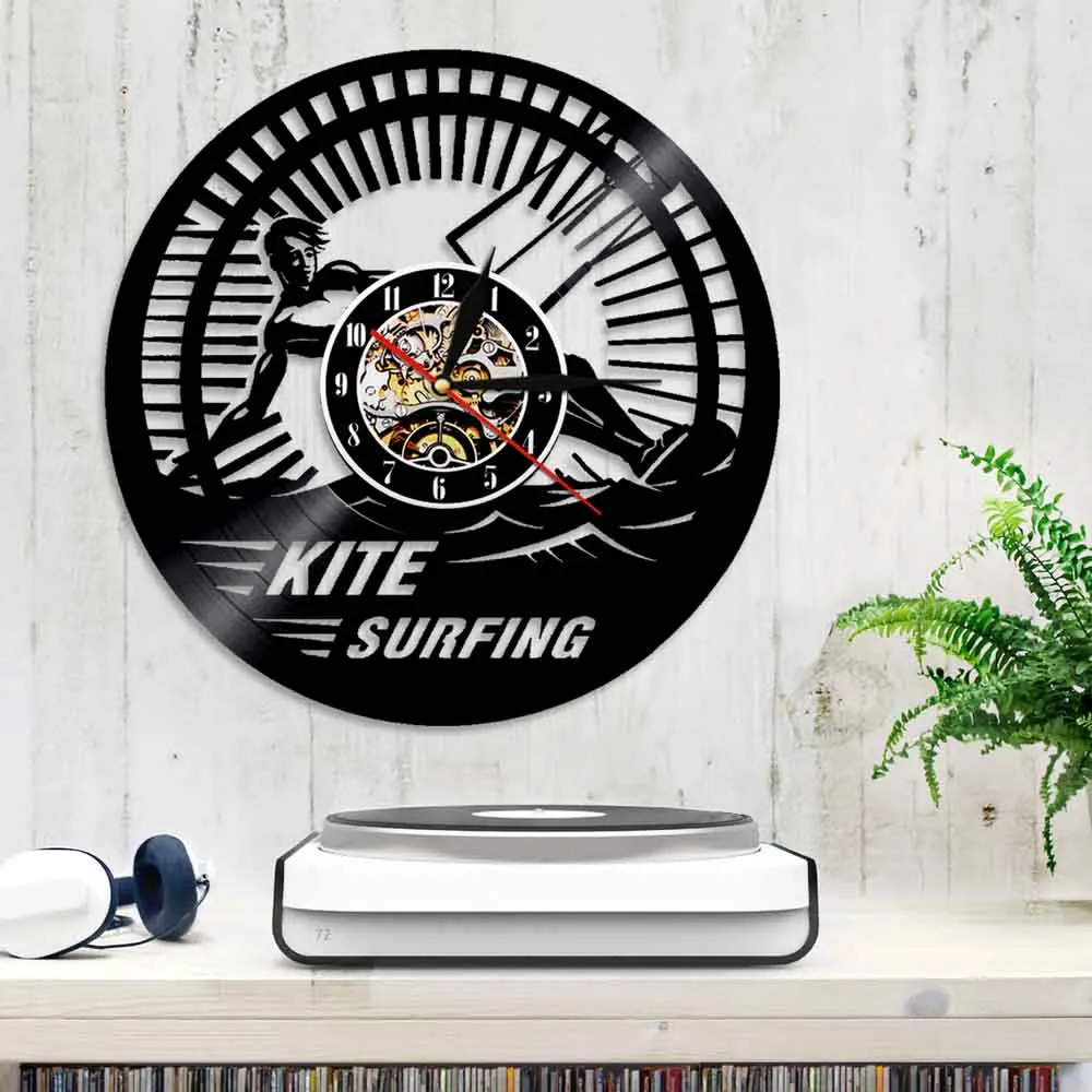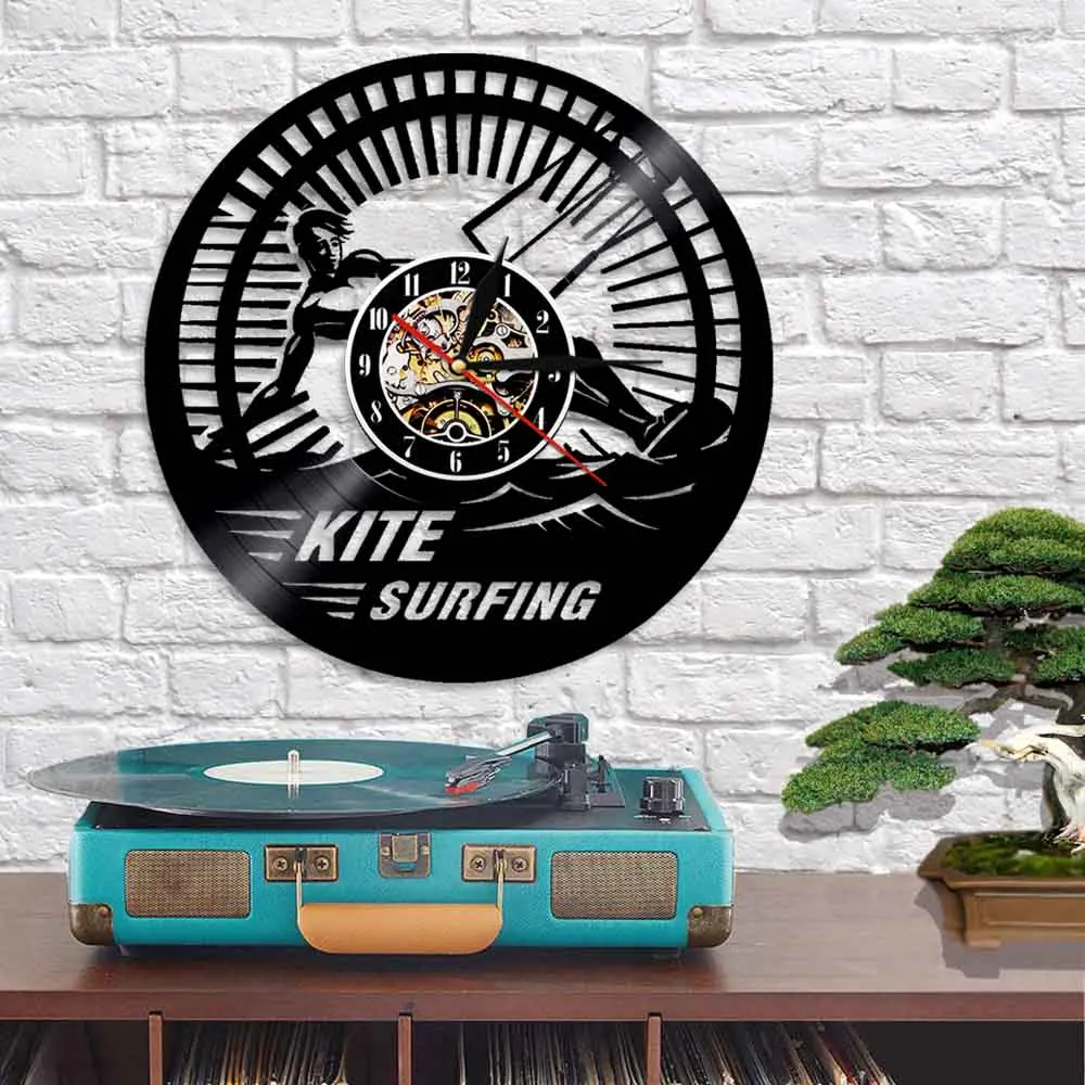 Виниловые часы для кайтсерфинга, настенные часы с пластинкой, для морских видов спорта, для домашнего декора, настенные часы, альбом для кайтсерфинга, часы с музыкальной пластинкой