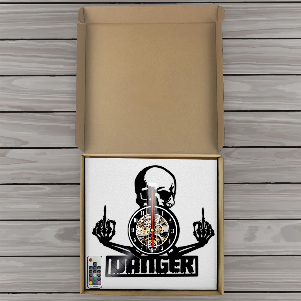 Часы со светодиодной подсветкой, готические настенные креативные тихие наручные часы с изображением черепа, демона, виниловой записи, в стиле панк, среднего пальца