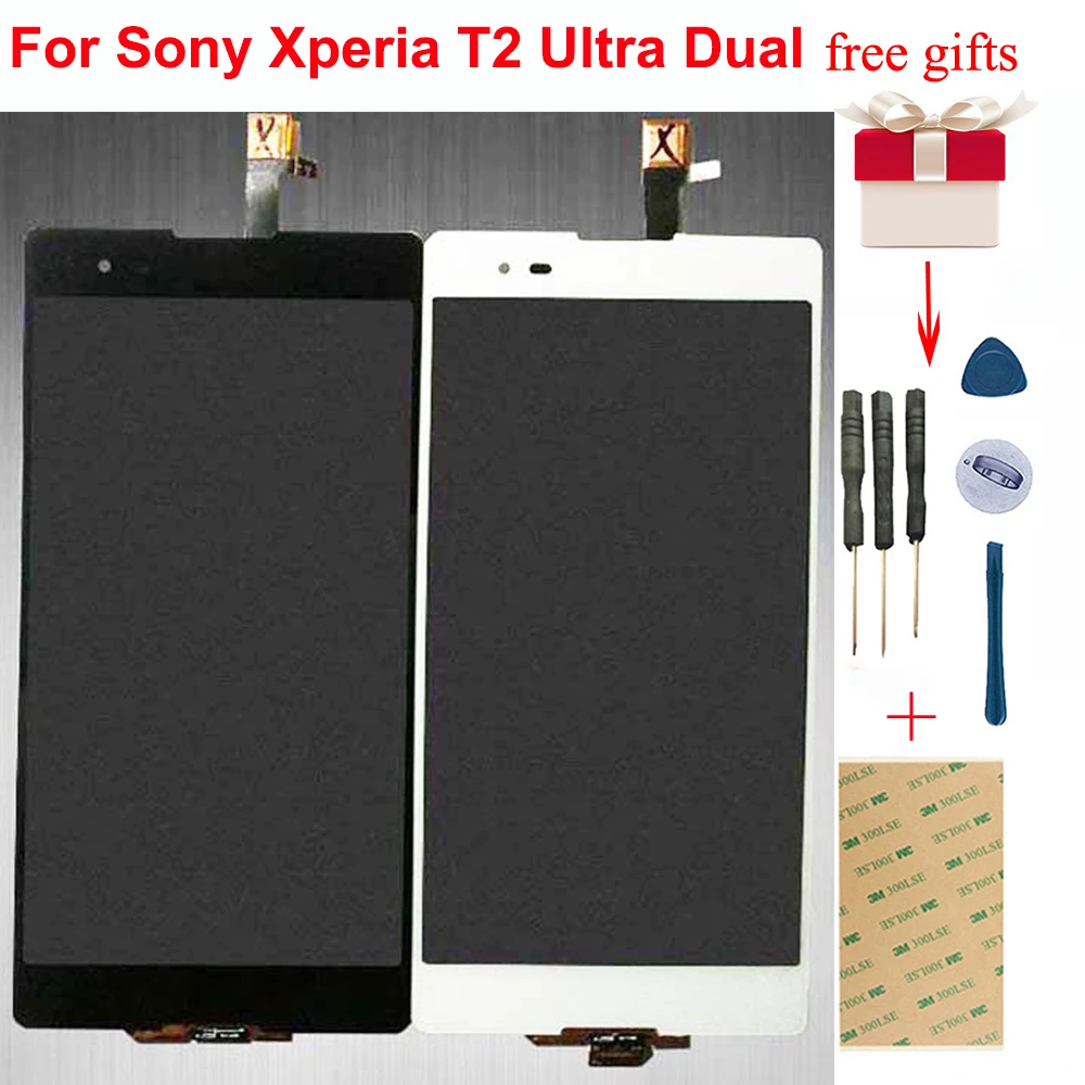 Для Sony Xperia T2 Ultra Dual D5322 D5303 D5306 сенсорный экран дигитайзер Сенсорное стекло + ЖК-дисплей экран панель в сборе
