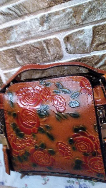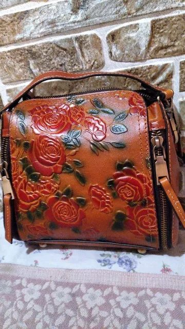 Женская сумочка через плечо, из натуральной кожи, с цветочным рисунком