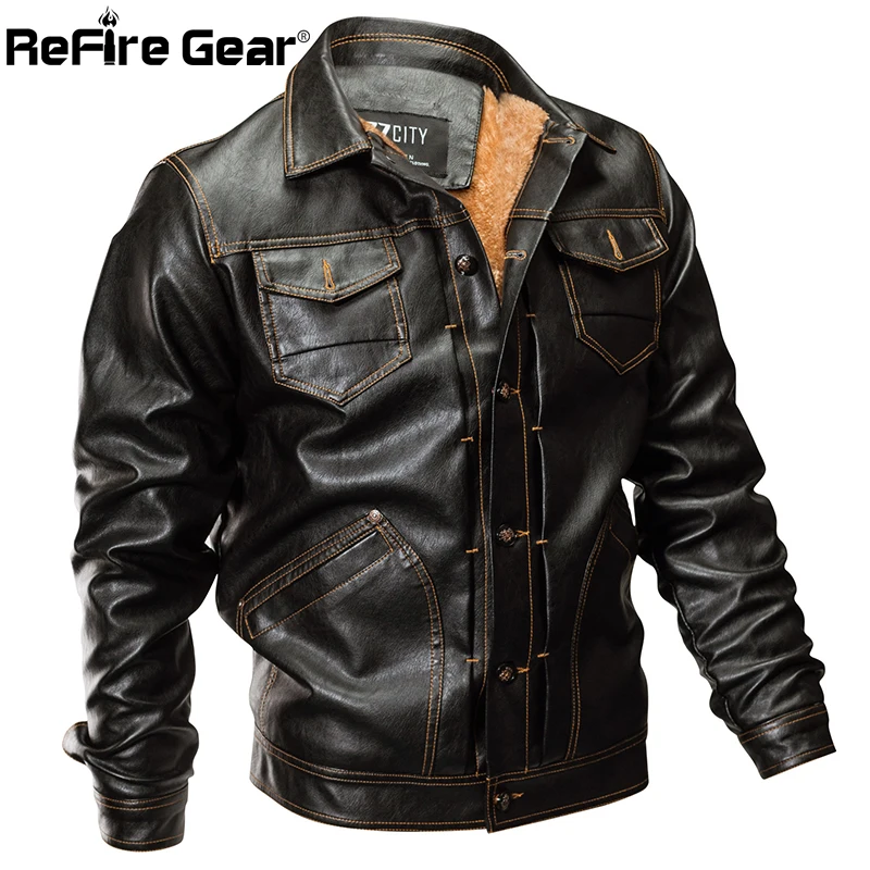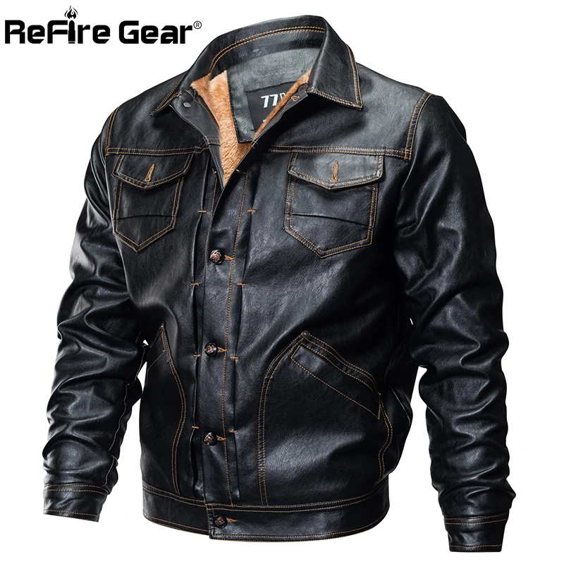 ReFire Gear зимняя куртка из искусственной кожи Мужская тактическая армейская куртка-бомбер теплая военная куртка-пилот Толстая шерстяная мотоциклетная куртка с подкладкой