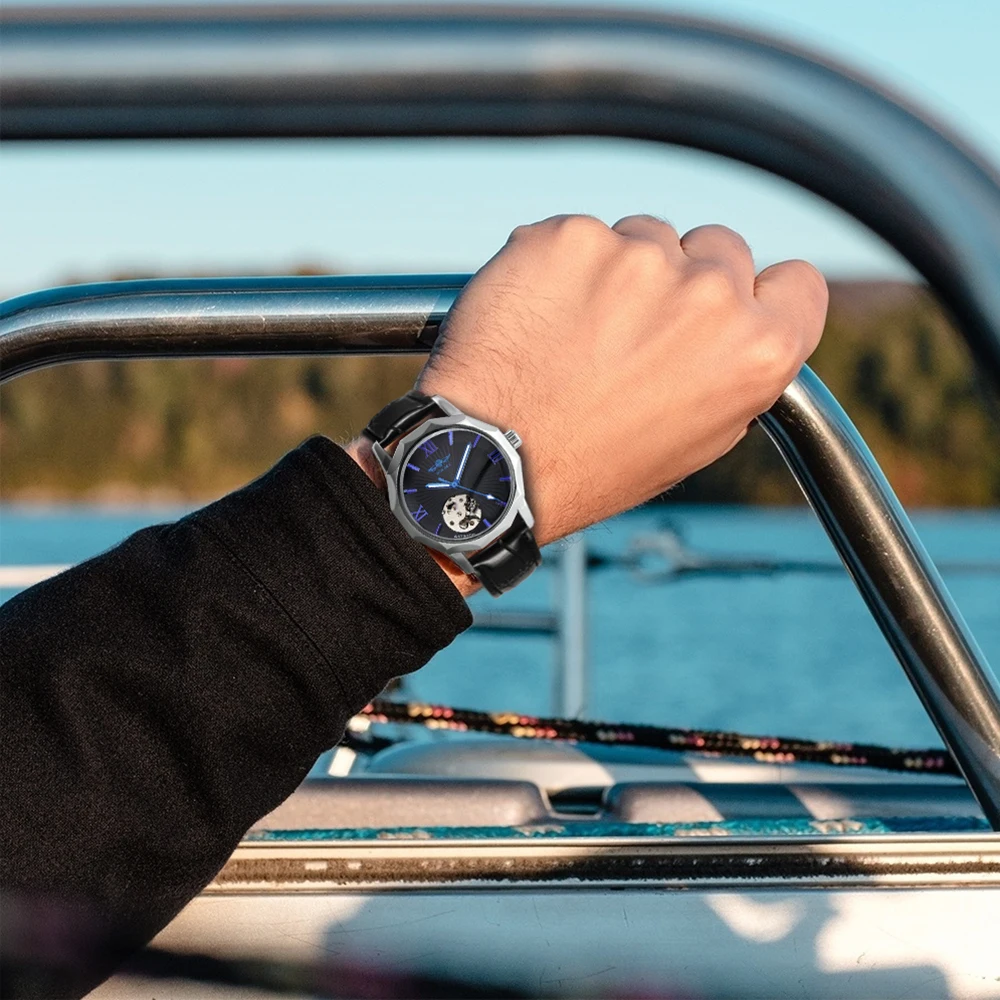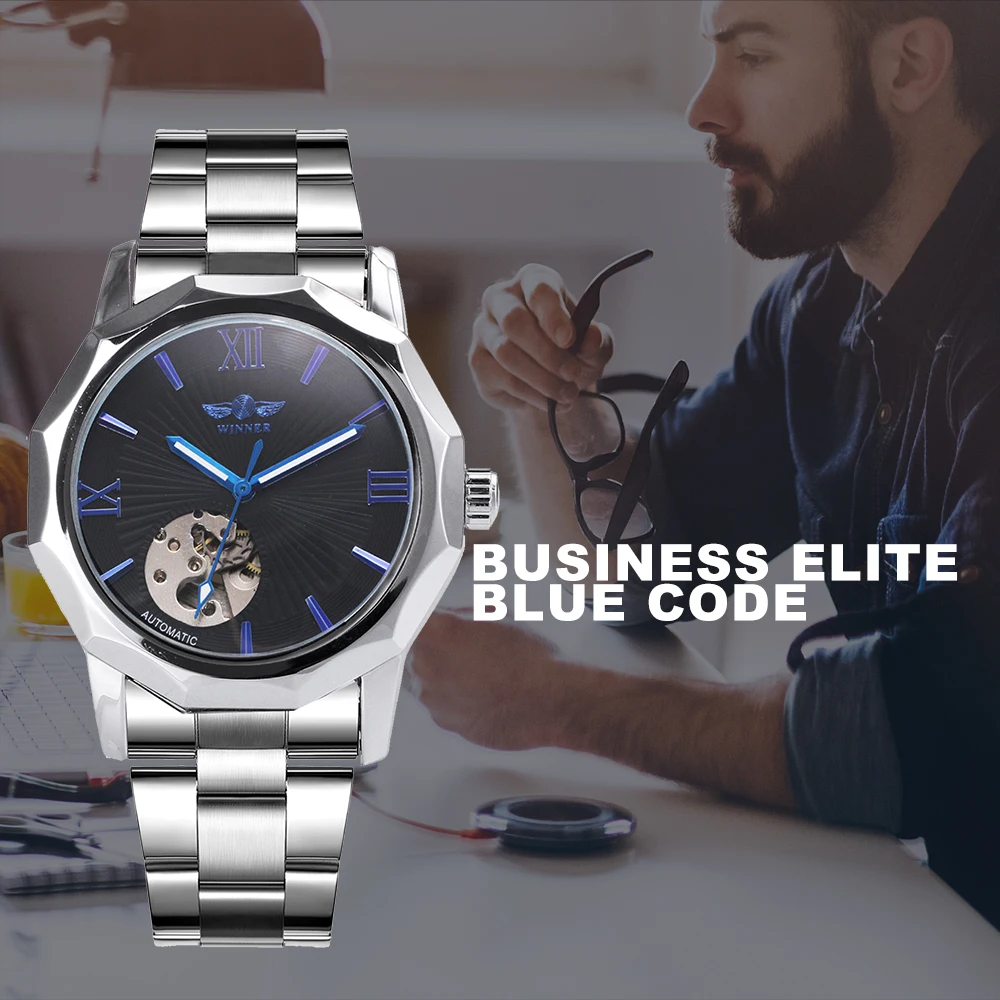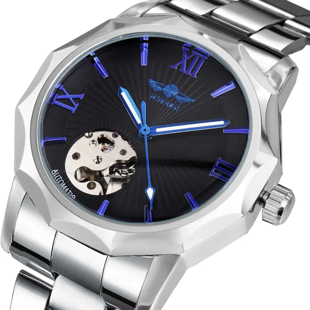 Мужские механические часы WINNER, синие автоматические часы с экзот...