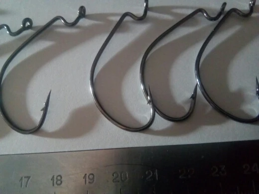 хорошие крючки, брал #6 размер, для 2 дюймовых приманок как раз, проволока тонкая.
