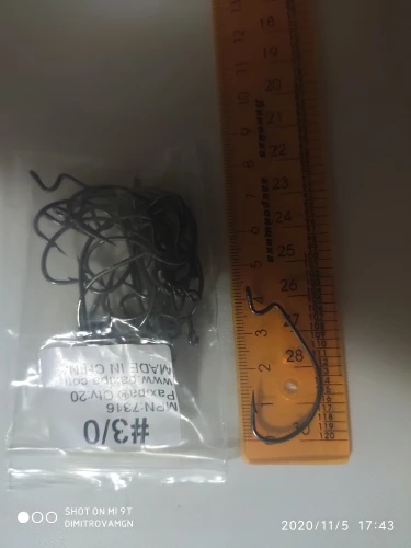 Доставка в МО три недели, по России не отслеживается, только статус прибытия в почтовое отделение. Заказал номера 4/0 и 5/0 - и те и другие одинаковые (только пакетики разные)), длина 58 мм, толщина проволоки 1,7 мм. На фото на линейке номер 4/0 и 5/0 - разницы нет, все сорок штук одинаковые!