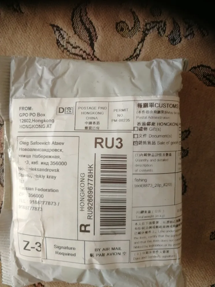 В Украину пришла за 17 дней. Трек отслеживался. Крючки норм.