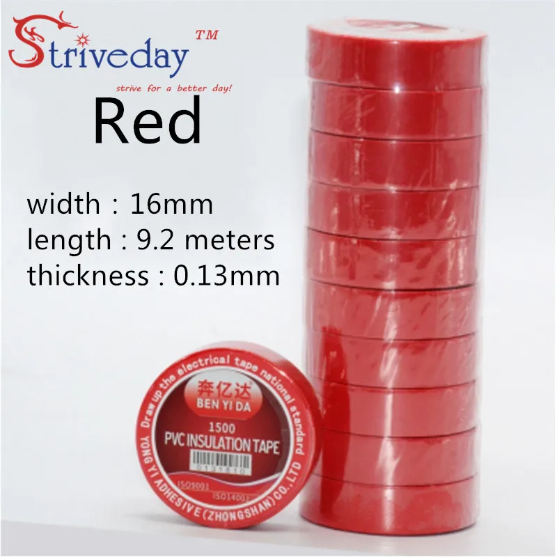 10 шт.лот, красная электрическая лента 16 мм * 9,2 метров, изоляционная термоизоляционная водонепроницаемая лента из ПВХ сделай сам