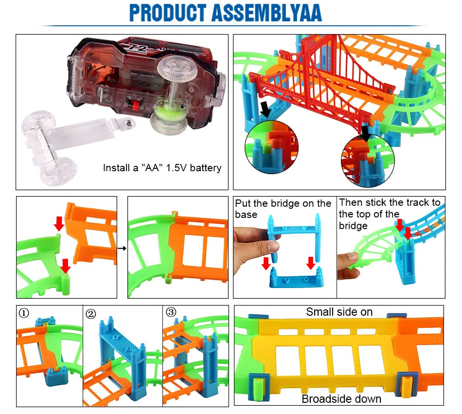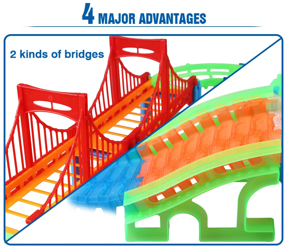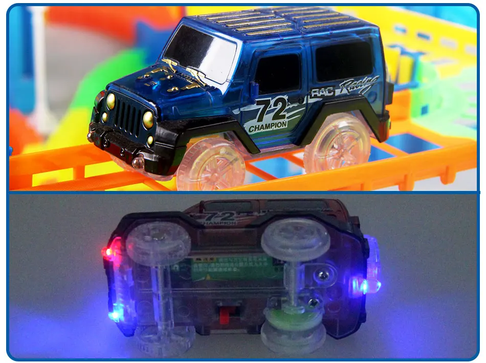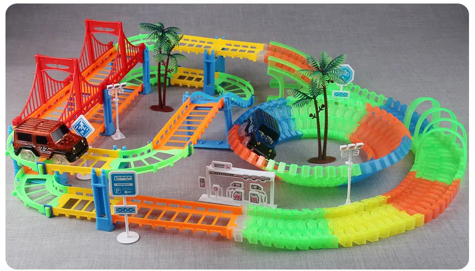 Светящиеся игрушечные машинки с гибкой дорожкой, Детские гоночные изгибы на рельсовой дорожке, светодиодные электронные машинки сделай сам, игрушка для мальчиков, подарок для детей