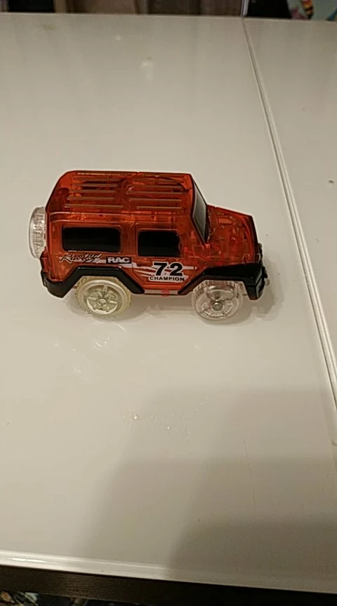 Заказали 2 машинки, одна синяя и одна красная, синяя была упакована в запаянный конверт, а красная в обычную плёнку, ак вот, красная такое впечатление что уже ею играли, колеса стерты, сама вся побитая, пластик покоцан. А синяя и колеса целы и вся машинка в хорошем состоянии.
