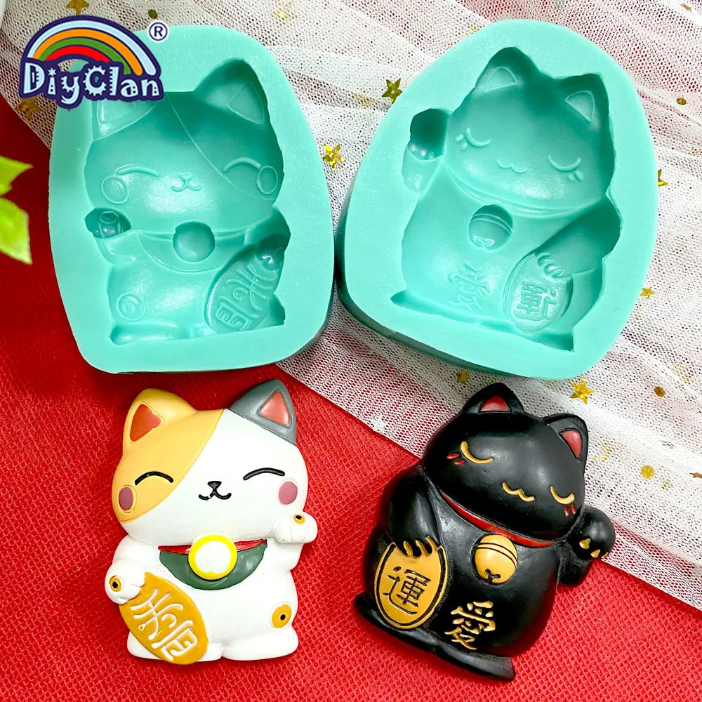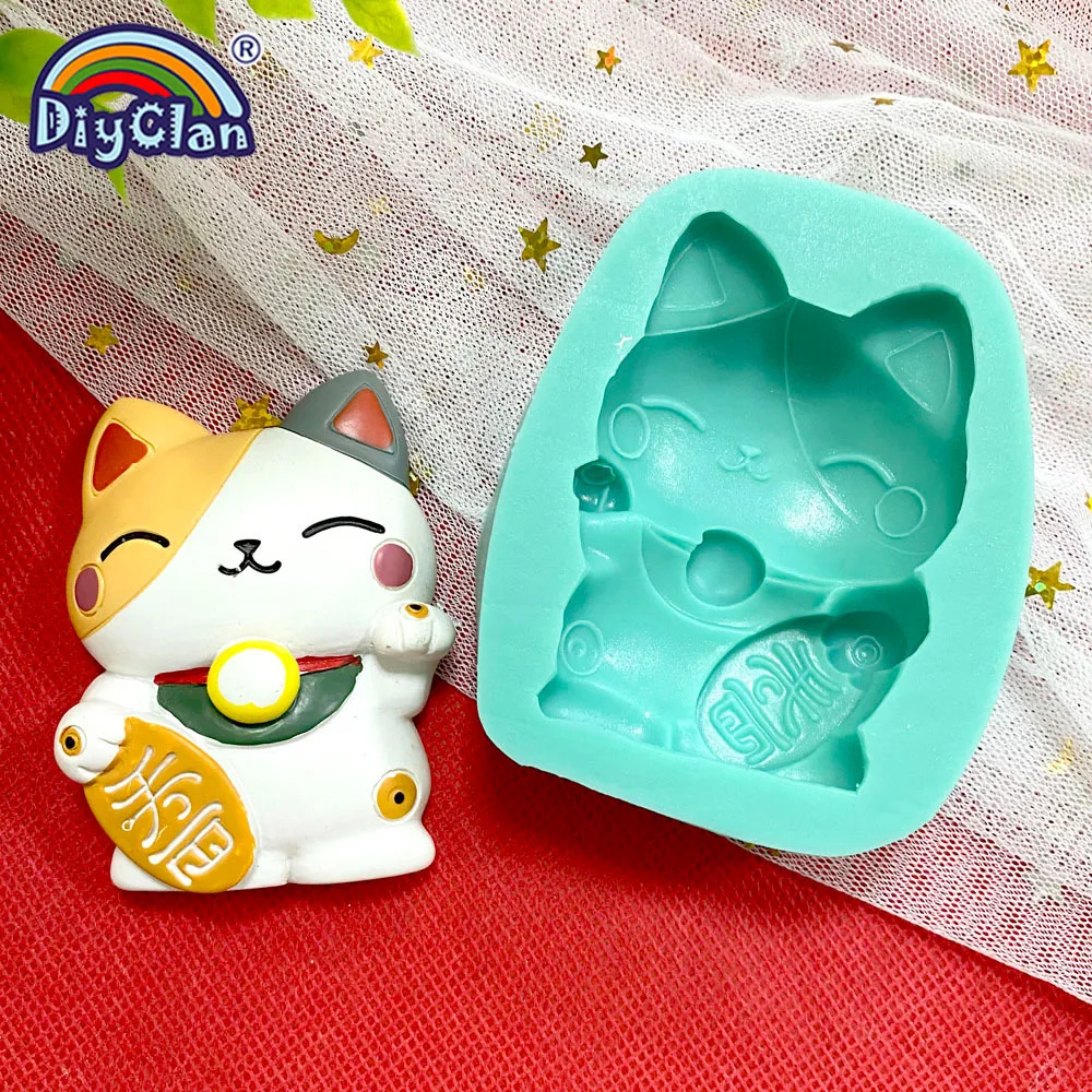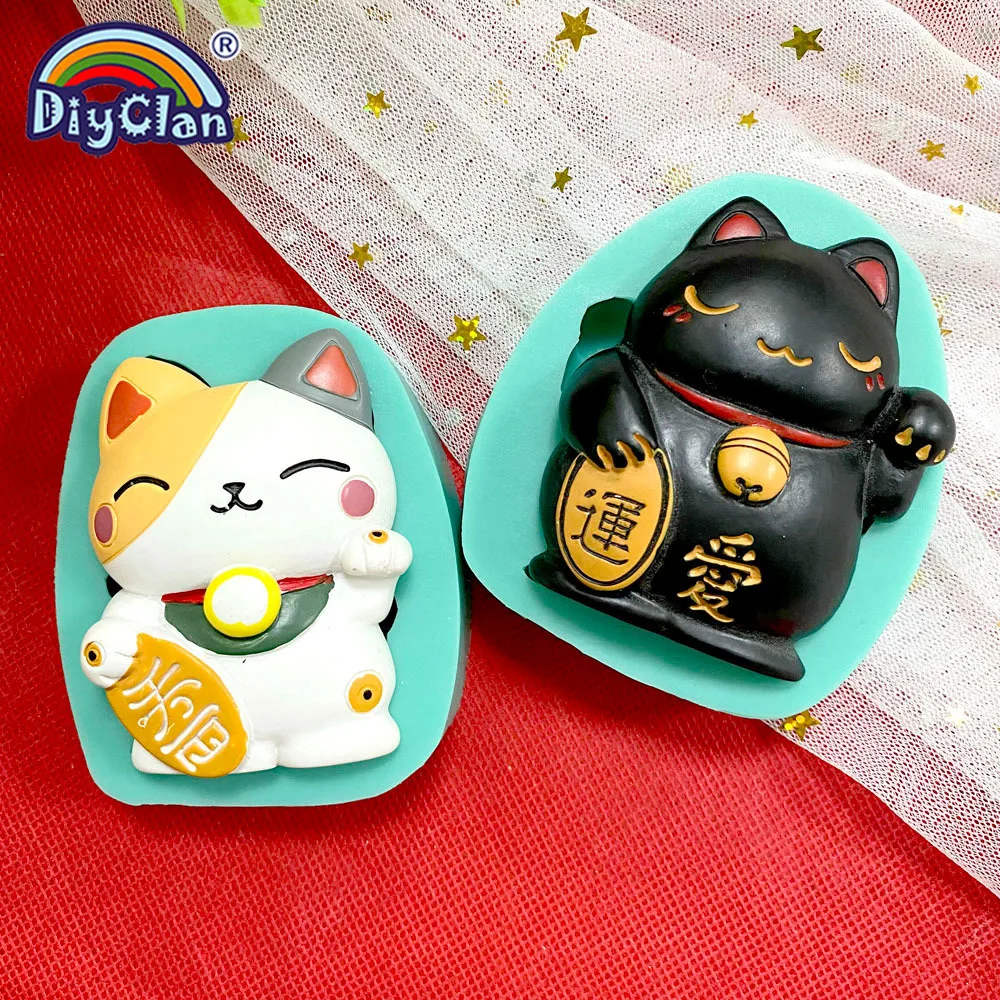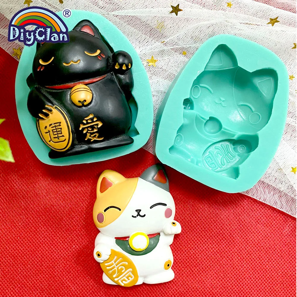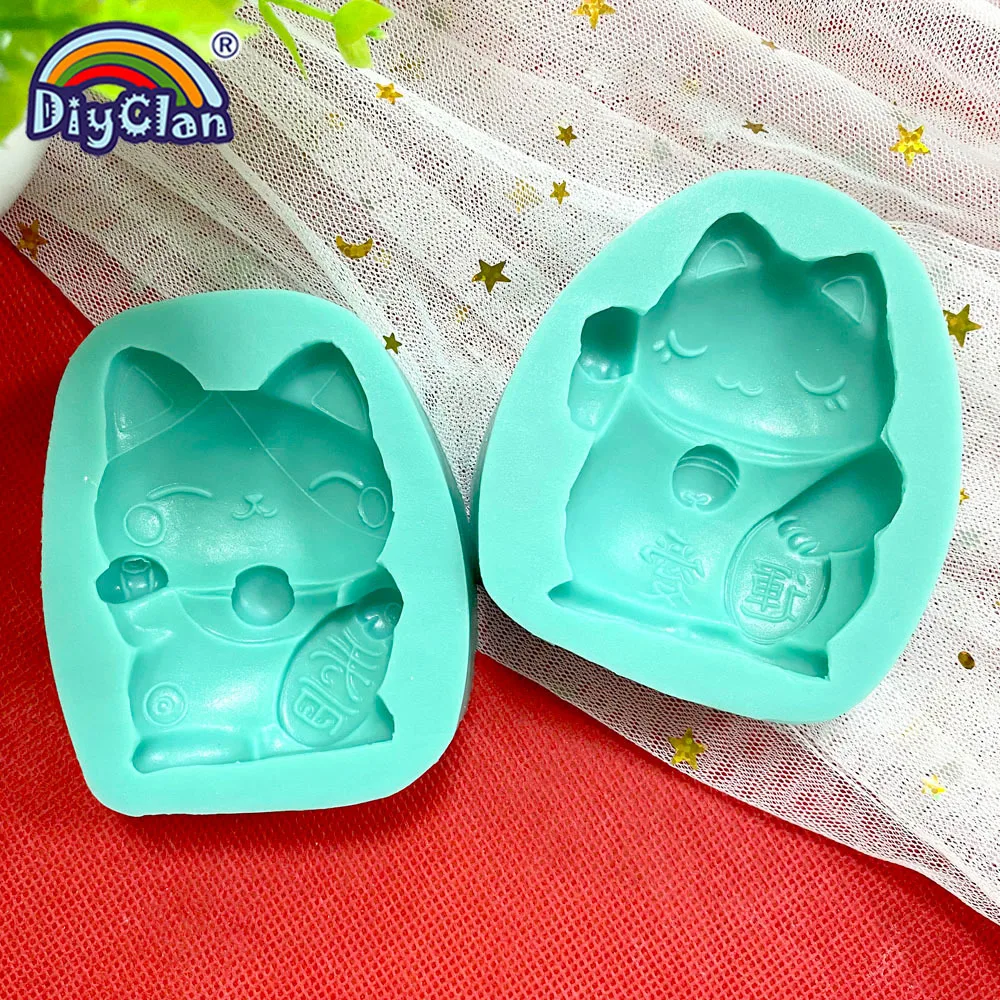Lucky Fortune Cat Силиконовые формы для украшения тортов, богатая любовь, кошка, форма для шоколадного фондана, животное, полимерная глина, инструменты