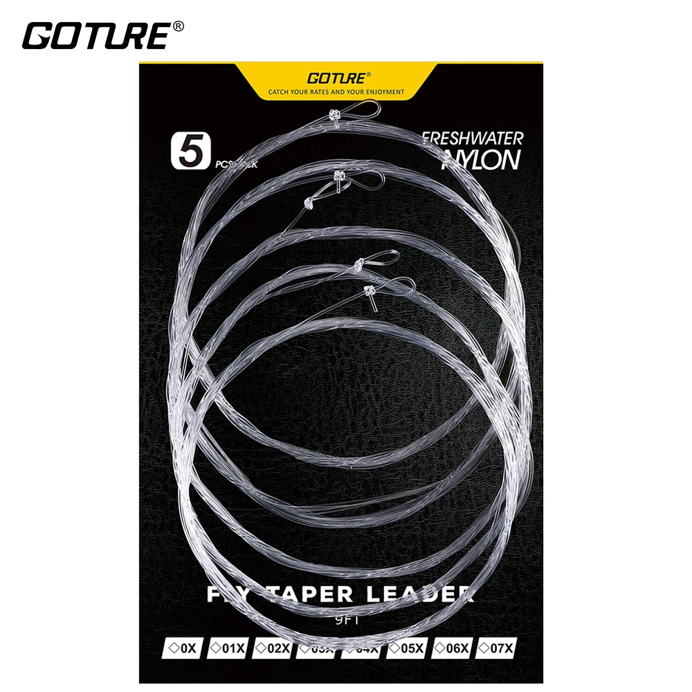 Goture 5 шт. пакет 2,74 м9 футов, пресноводная стальлососевый нейлон, для ловли нахлыстом, коническая леска, размер 0X-7X 1.8Lbs-16Lbs