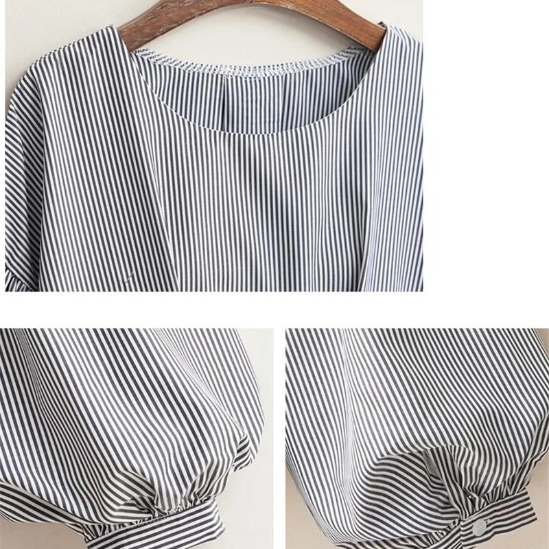 Женская винтажная блузка в полоску, с бантом и рукавами-фонариками