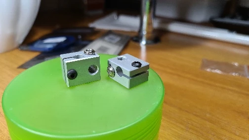 Хот-энд не супер - отверстие под нагреватель сделано не ближе к середине, а с самого края, так что при затяжке тонкая стенка скорее всего лопнет или отломится, под крепёж термопары поставили обычный компьютерный шуруп с широкой шляпкой, который просто перекрывает отверстие термопары, т.е. не годится совсем. Так что к покупке не рекомендую категорически. Это откровенная халтура!