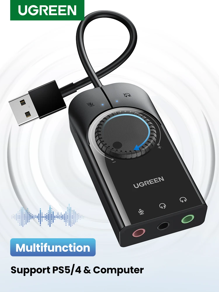 Внешняя звуковая карта Ugreen, USB аудио интерфейс, 3,5 мм выход для микрофона, аудио адаптер, звуковая карта для ноутбука PS4 гарнитура USB