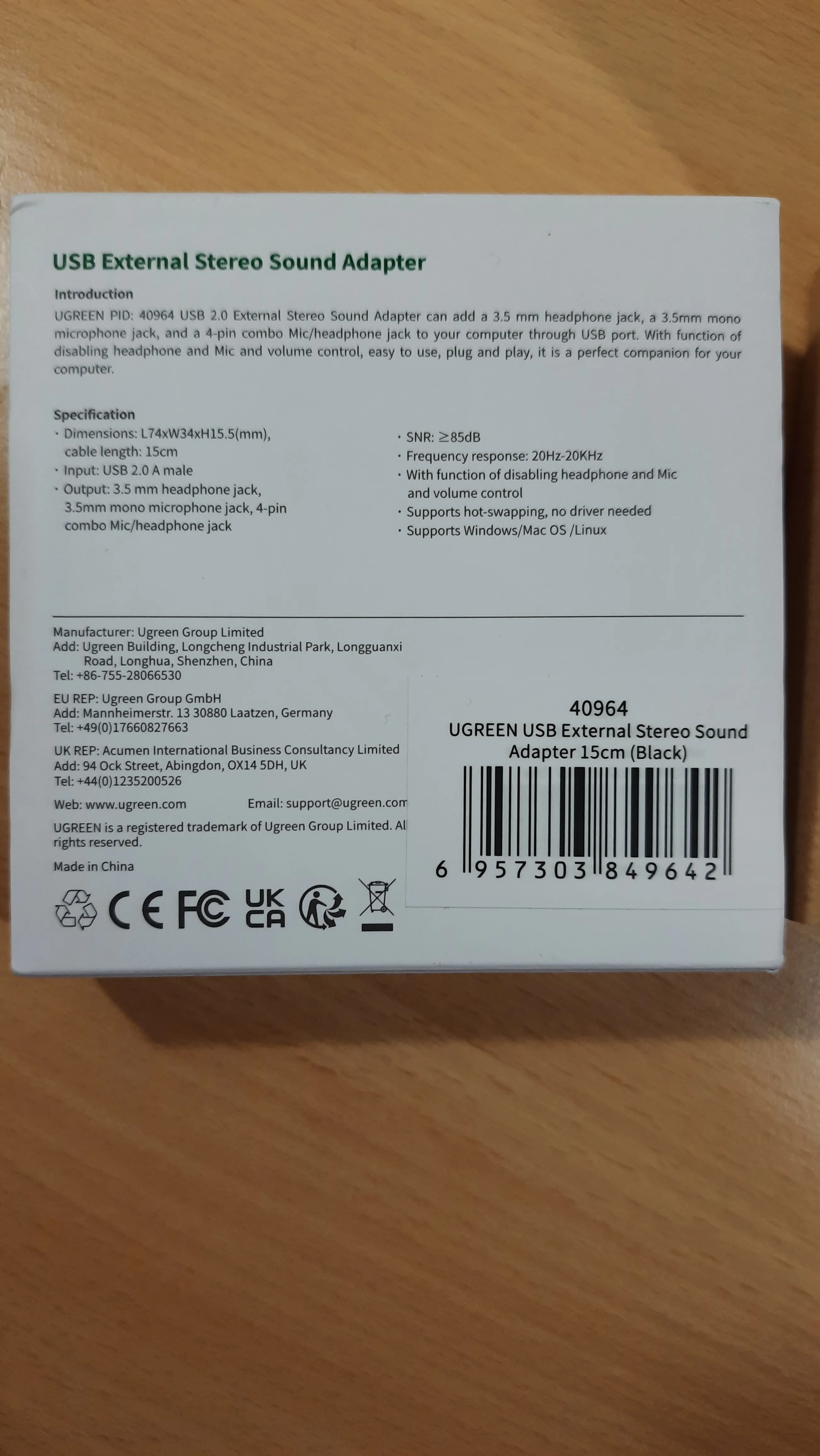 Заказ отправлен моментально, пришёл в пункт самовывоза за 5 дней. Быстро! Windows 10 и 11 устройство определяют, звук работает, громкость регулируется. Хорошее решение для старых проблемных компов.
