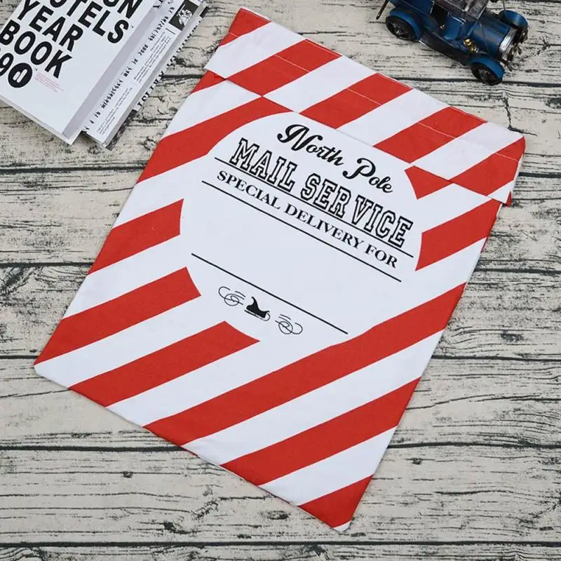 Винтажные рождественские подарочные сумки, конверт в полоску, холщовый мешок с красным шнурком в виде Санты, 20 шт.лот