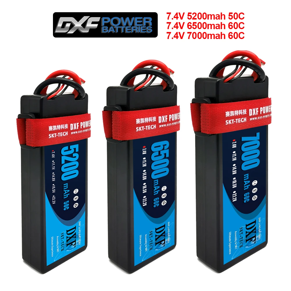 Аккумулятор DXF Lipo 2S 7,4 в 7000 мАч 6500 мАч 5200 мАч 50C 60C для радиоуправляемых автомобилей, грузовиков, лодок, FPV самолетов, квадрокоптеров, 2 шт.