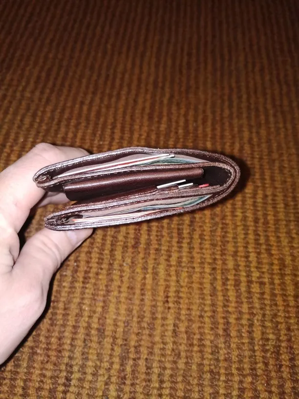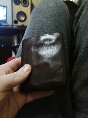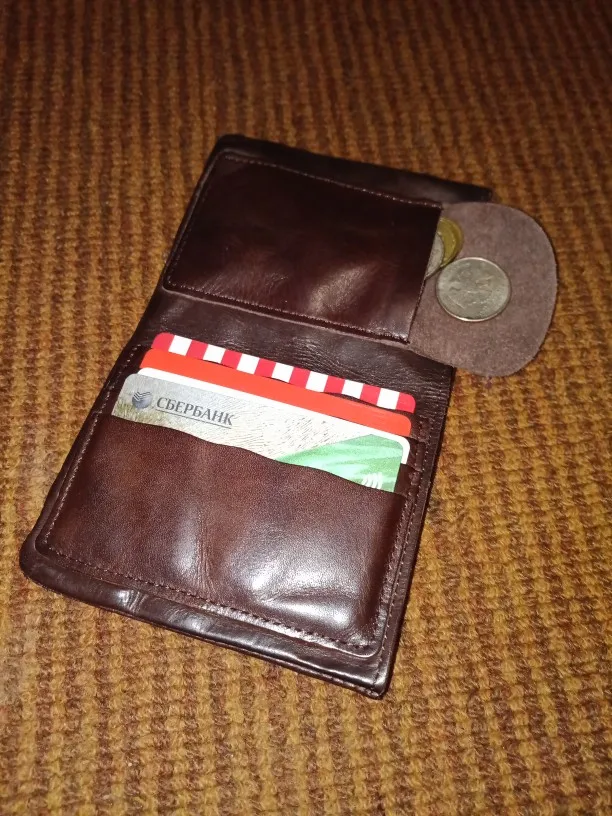 Кошелёк соответствует описанию. Кожа чуть жёстче, чем ожидал, но в остальном всё как на фото. Доехал очень быстро.