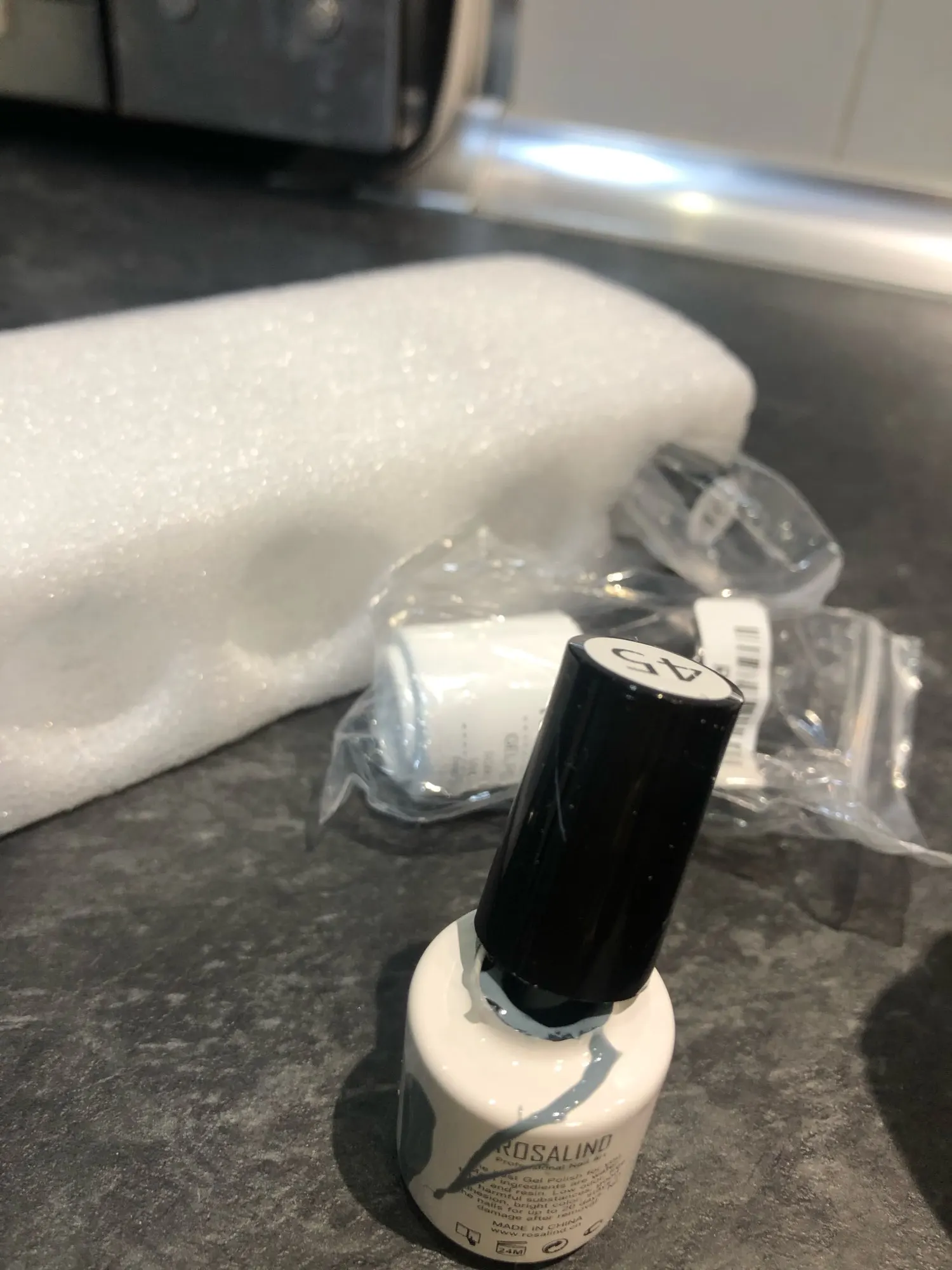 Вау, это красивый цвет! Посылка прибыла менее чем за 3 недели в Италии, хорошо упакована. Я еще не примерил его на ногтях, но я знаю, что Rosalind хороший бренд, длительное впитывание и их цвета очень блестящие даже после очищения.