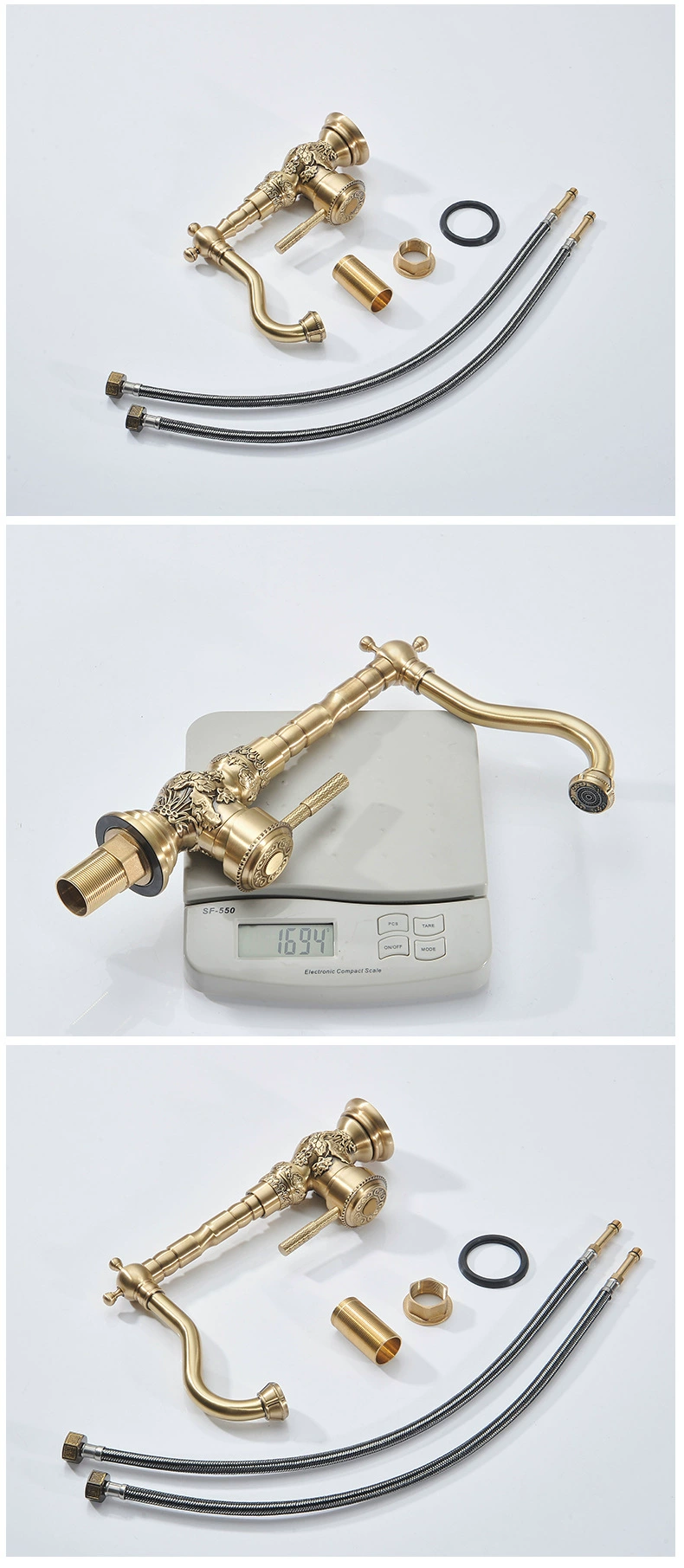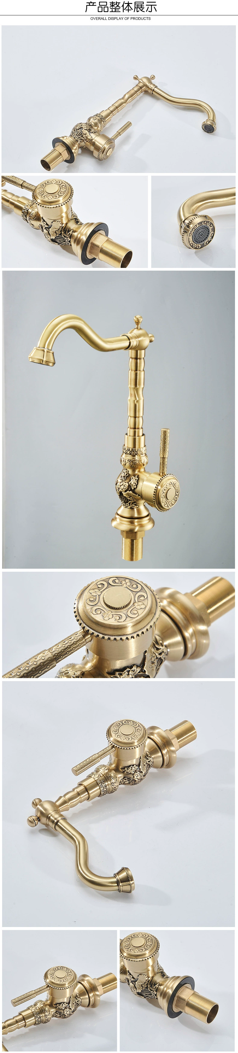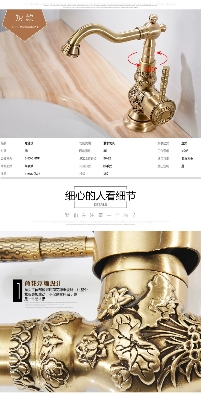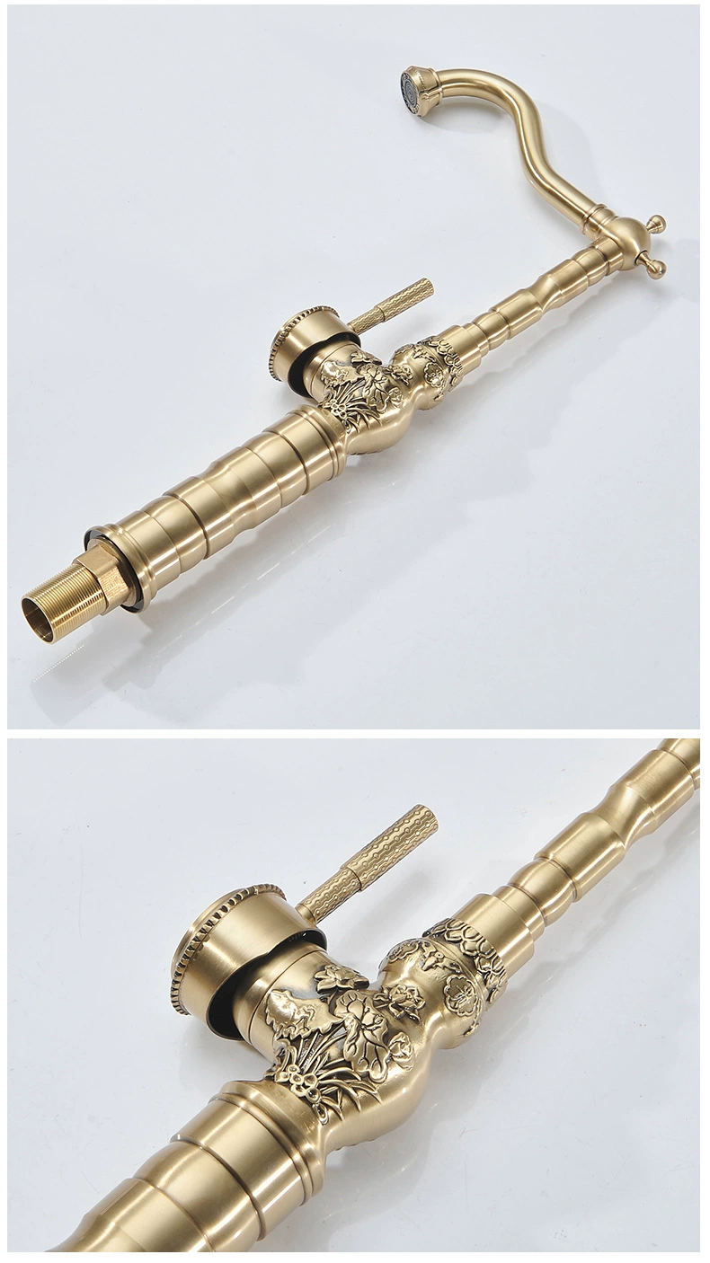 Европейский антикварный ретро резной кран для раковины, вращающийся на одной ручке, кран для горячей и холодной воды, латунный кухонный кранводопроводный кран