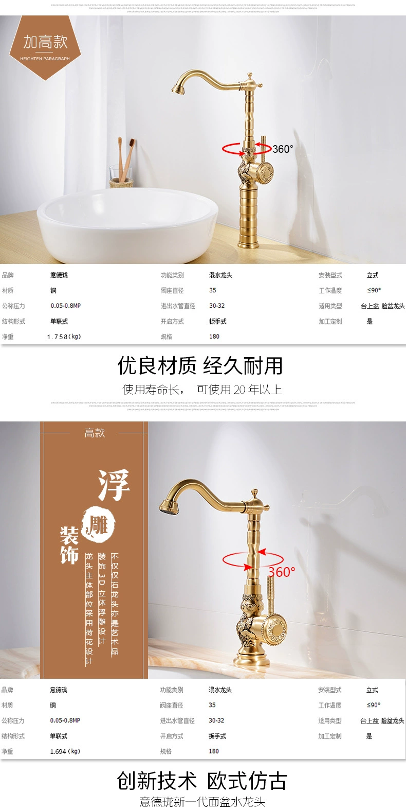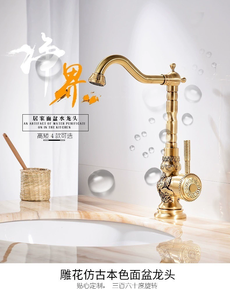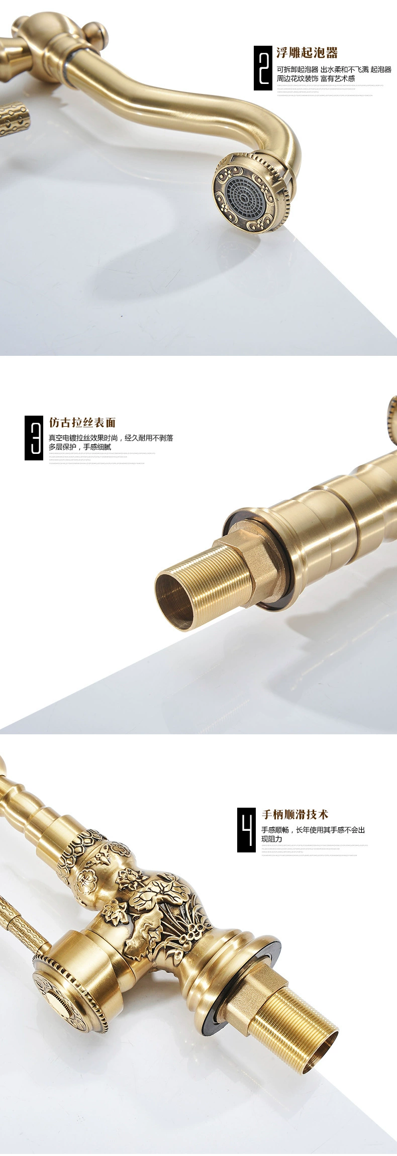 Смеситель для раковины, античная медь, латунь, резной смеситель дюй...