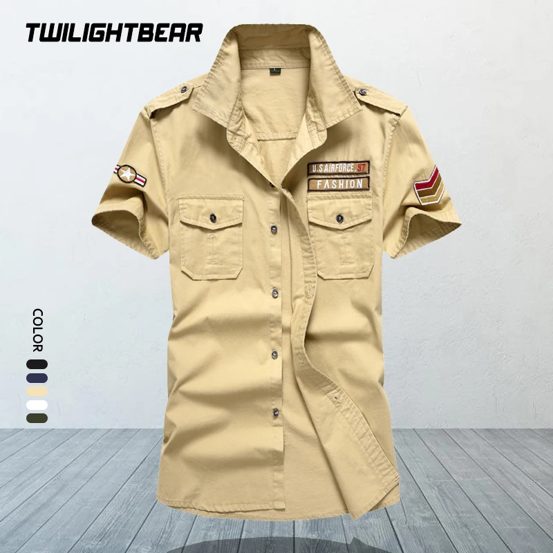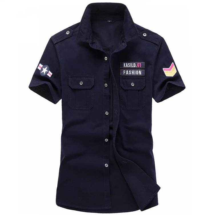 Мужские рубашки в стиле милитари, большие размеры, рубашка с коротким рукавом из чистого хлопка, Уличная Повседневная рубашка, Мужская одежда, Chemise Homme 6XL MFJH105