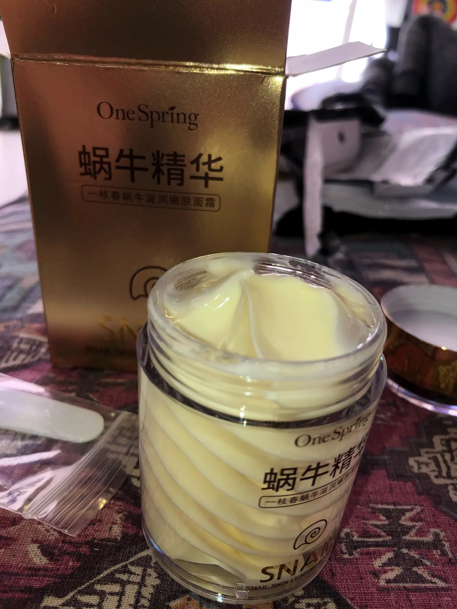 Пришел вовремя. Упакован супер! Коробка, пластик, герметичный пакет. Баночка очень красивая, палочка для набора крема. Пахнет приятно, на лице тоже очень комфортные ощущения. Как действует пока не знаю. Крем не тянется как snail tianDe. Надеюсь так же хорошо, как выглядит))