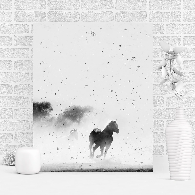 Рисунок и плакат на холсте с изображением лошади, черно-белая Скандинавская Печать на холсте с изображением лошади, современное домашнее художественное украшение на стену