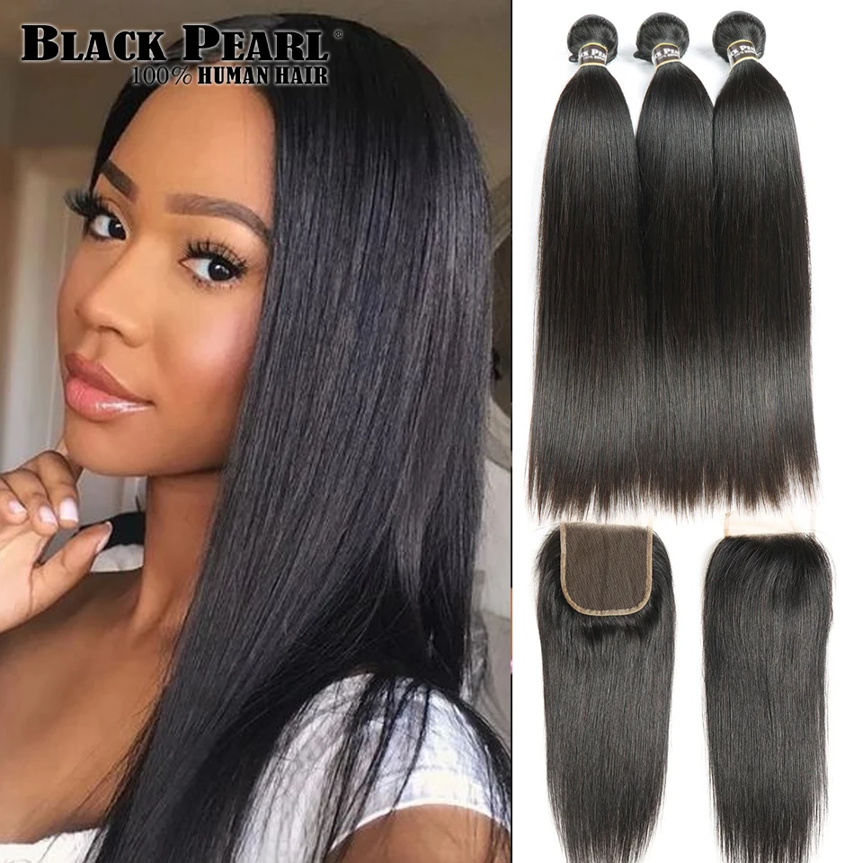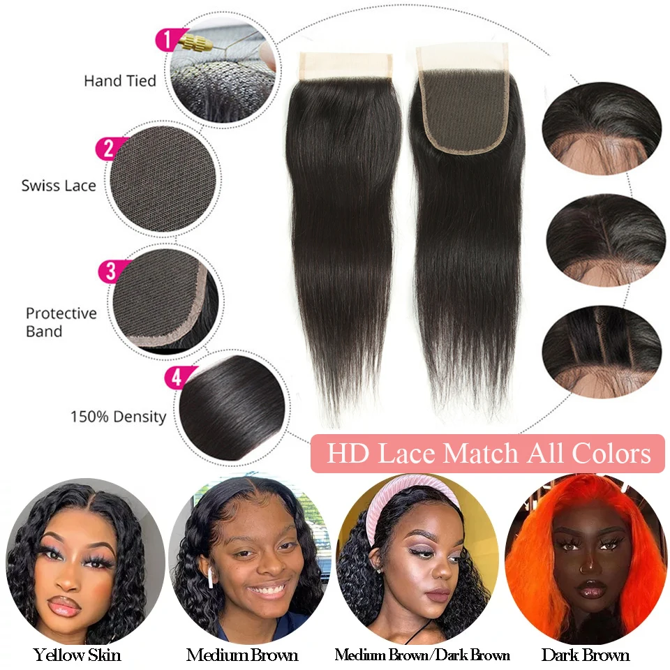 Кости прямые человеческие волосы пучки с закрытием HD кружева закрывает пряди бразильские волосы плетение пряди закрытием Remy волосы