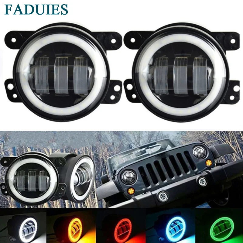 FADUIES 2 шт. в горошек 4 дюйма Круглый Wrangler светодиодный фонарь светильник 30 Вт 6000 К Белый Halo Кольцо DRL внедорожных Противотуманные огни для Jeep Wrangler JK TJ LJ