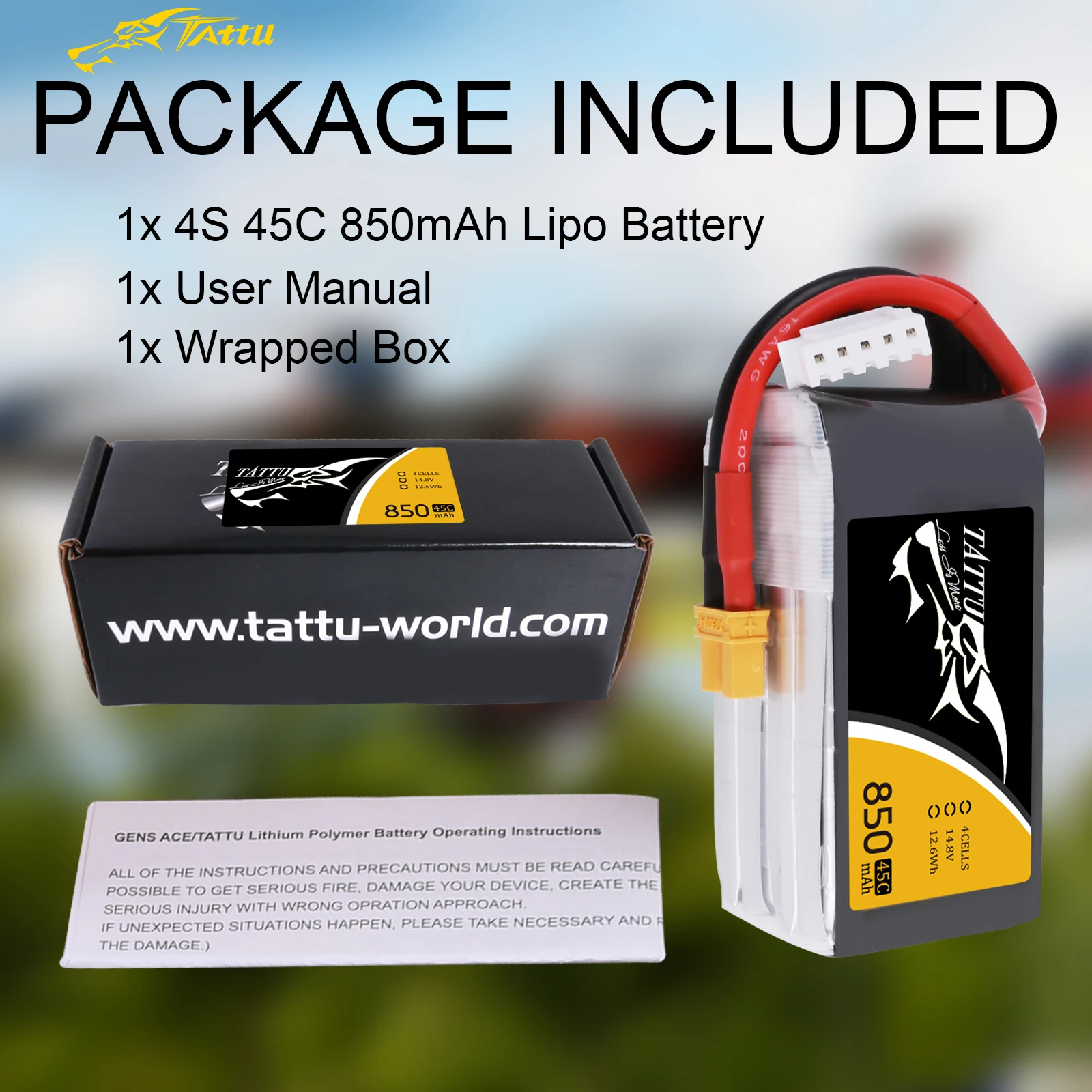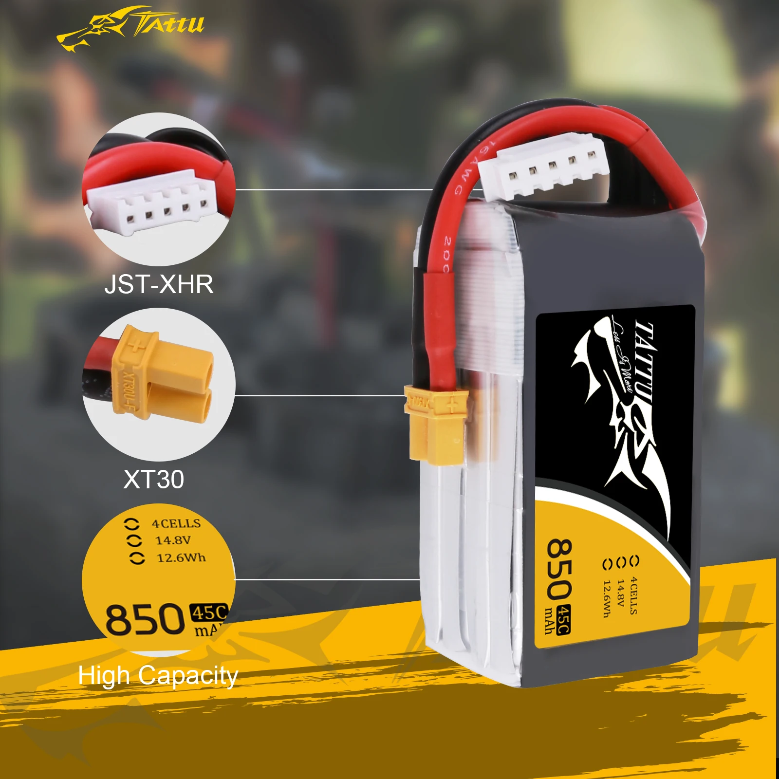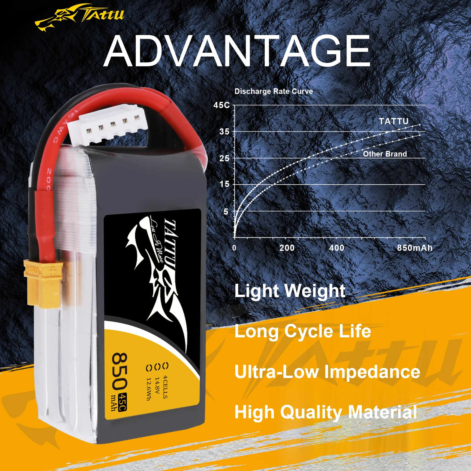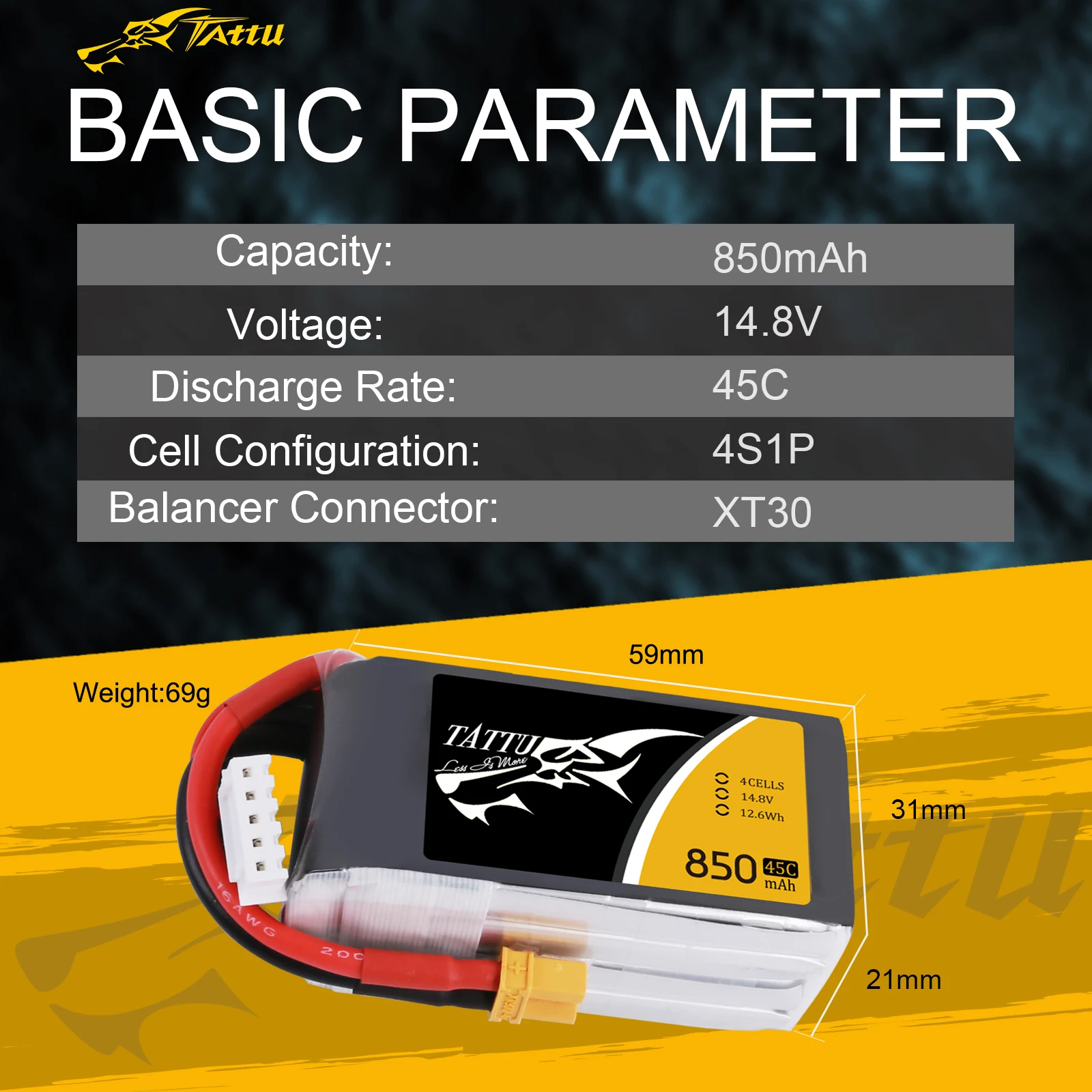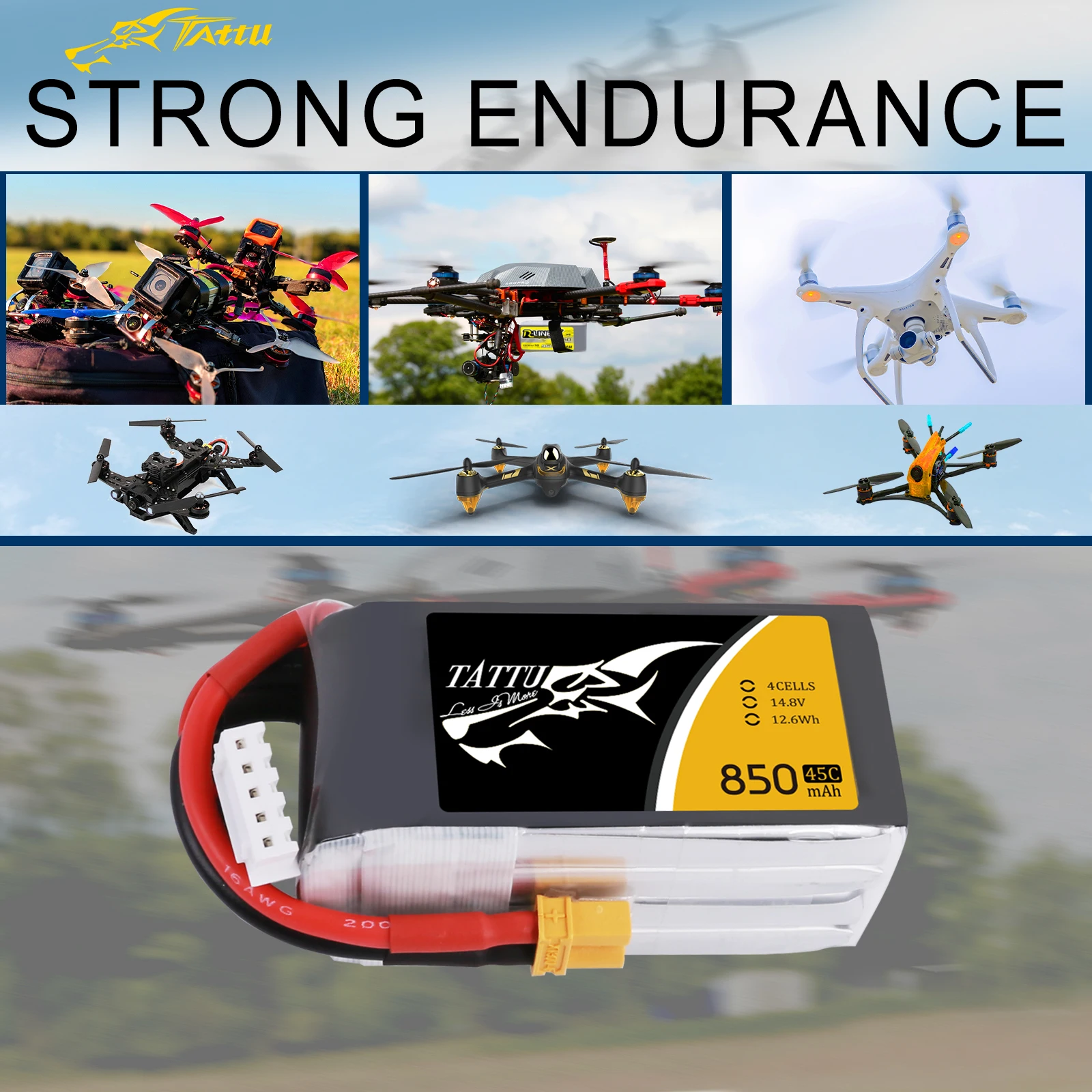 Литий-полимерный аккумулятор Tattu 14,8 V Lipo 4S 850mAh батарея 45C XT30 Plug RC аккумулятор для FPV Drone 150 Размер Multirotor Quadcopter Frame