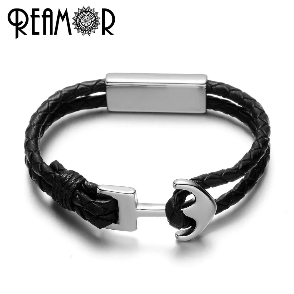 REAMOR ювелирные изделия размер отверстия 8 мм 316l браслет из кожи...