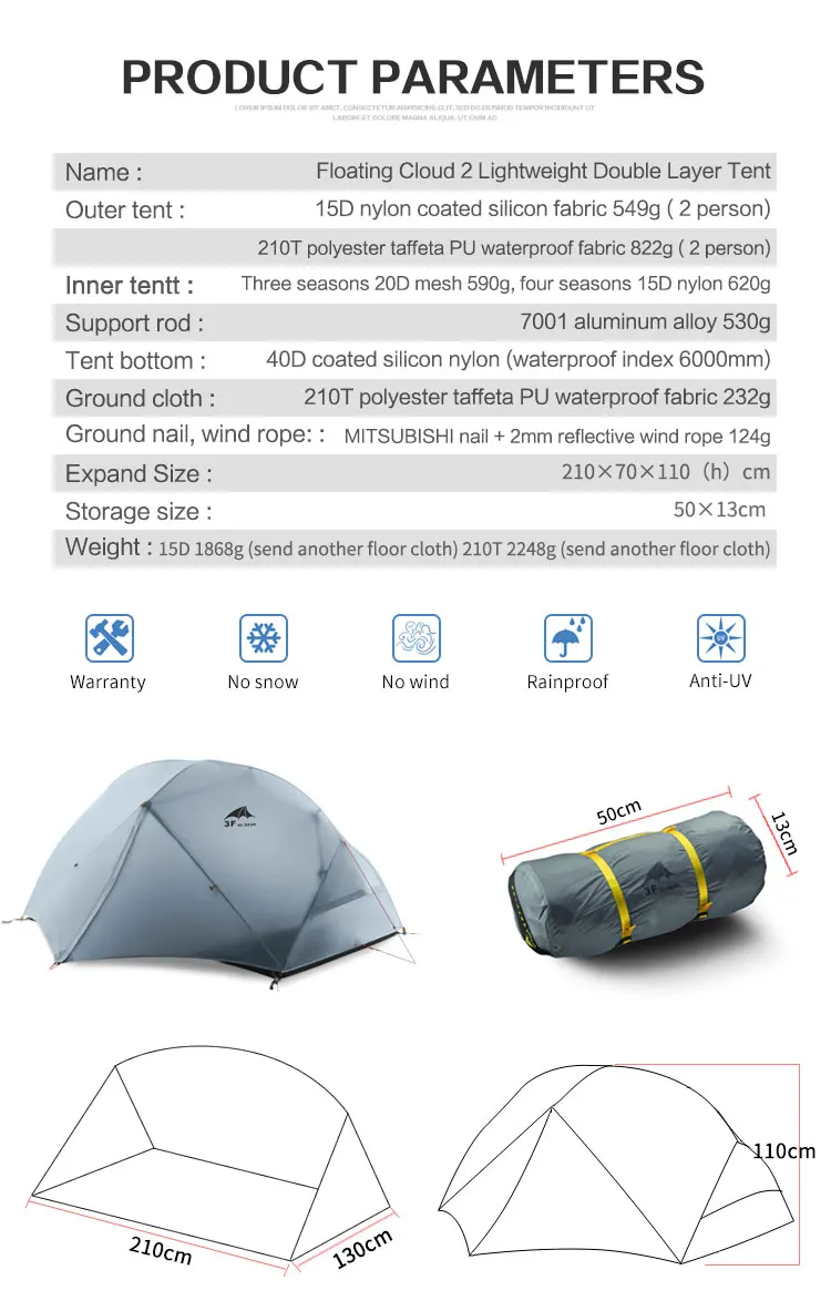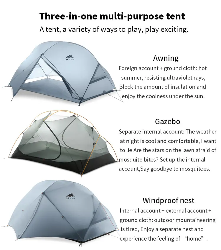 Двухместная кемпинговая палатка 3F UL GEAR, Сверхлегкие палатки Kamp tenda tente barraca de acampamento