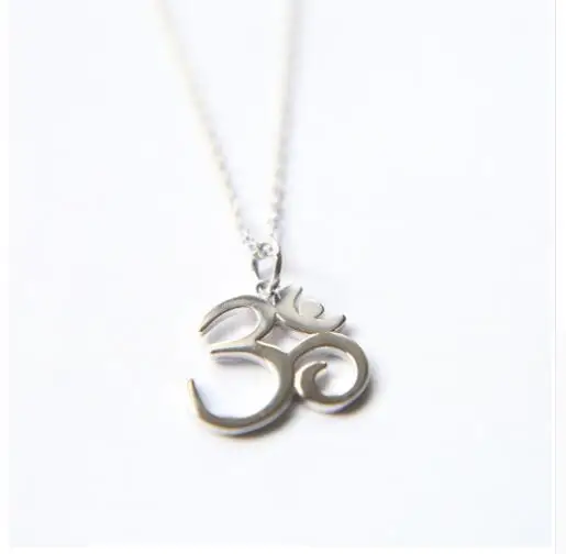 Новинка 2018, изящное ожерелье из чистого серебра 925 пробы, цепочка 41 + 5 см, блестящее Золотистое Ожерелье для женщин, символ йоги Ом, Индия