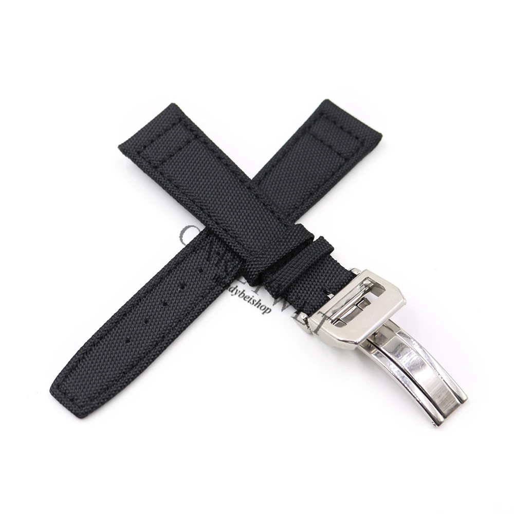 Ремень CARLYWET 20, 21, 22 мм, черный, нейлоновый, тканевый, наручные часы с кожаным ремешком, из нержавеющей стали 316L, с Раскладывающейся пряжкой, для IWC
