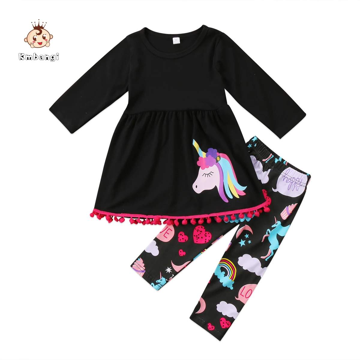 Комплект из 2 предметов для маленьких девочек одежда Рог единорога для девочек младшего возраста костюмы мультфильма Мой маленький пони бутик радужные брюки с единорогами наборы для ухода за кожей