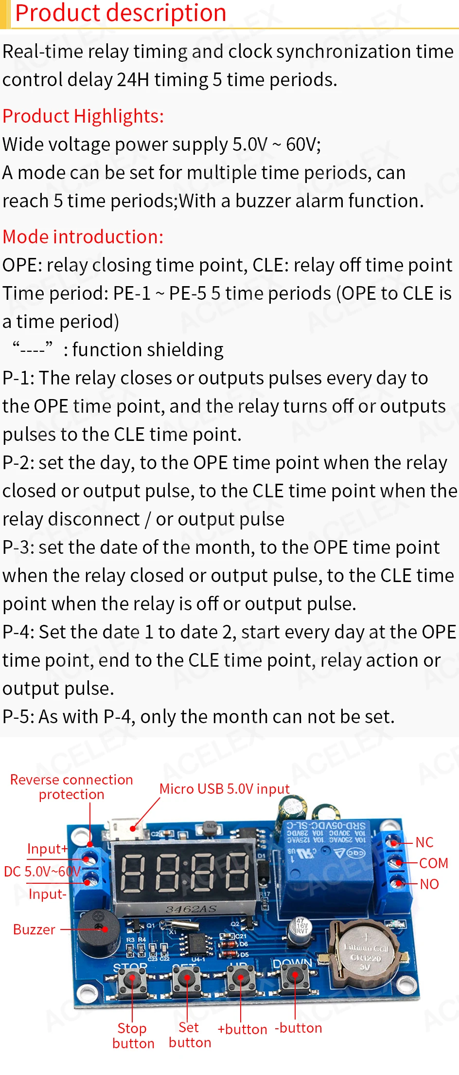 Реле таймера задержки таймер в режиме реального времени, 5 в постоянного тока, переключатель, Синхронизация Часов, несколько режимов управления, схема подключения