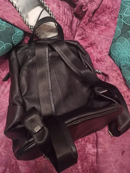 Одна из самых удачных покупок с али. Заказ делала 11 ноября, а 18 ноября уже привёз курьер домой. Общалась с вежливым продавцом по поводу материала. Сказали что натуральная воловья кожа. Тест огнём прошёл неплохо( фото прилагаю) бирку с кусочком кожи также пробовала поджигать- не горит)). Легко влезает не только планшет, а целая декоративная подушка, при этом если пустой не выглядит громоздким! Очень удобные лямки, вместительный, мягкий, но в тоже время держит форму. Отделений хватает и замечательно что замки скрыты от посторонних глаз! Спасибо магазину огромное. Давно хотела рюкзачок но все было что-то не то... в эту покупку я влюблена).