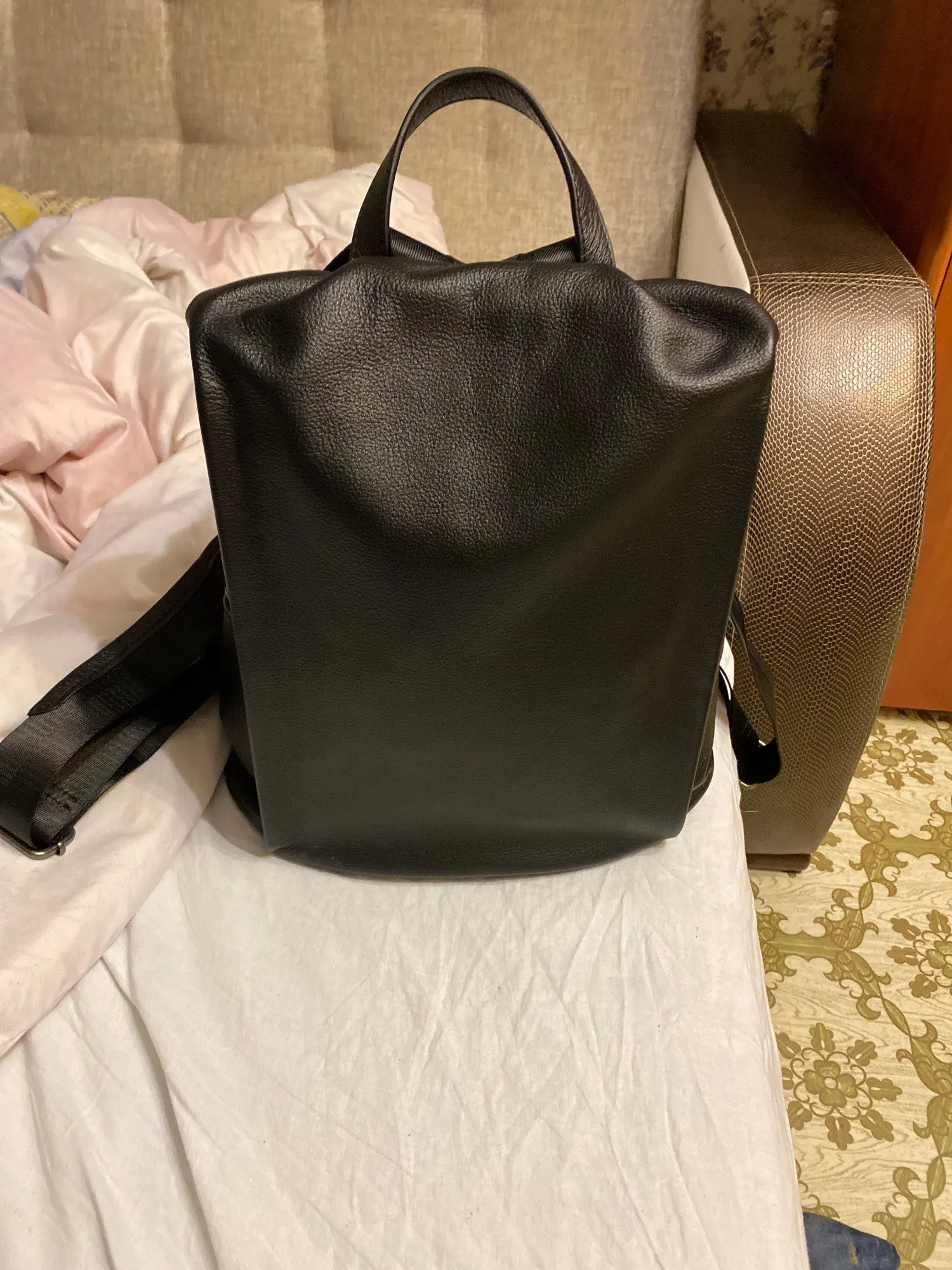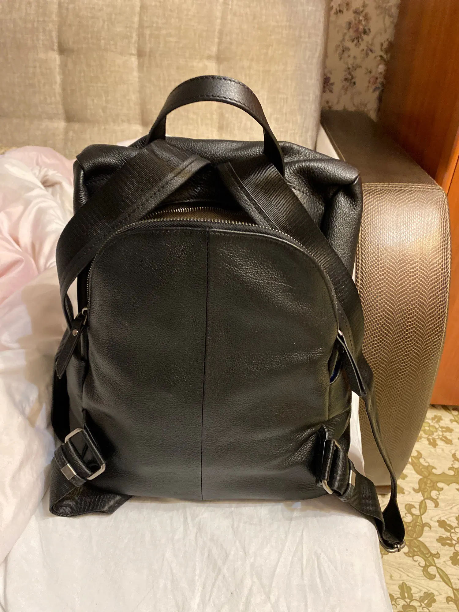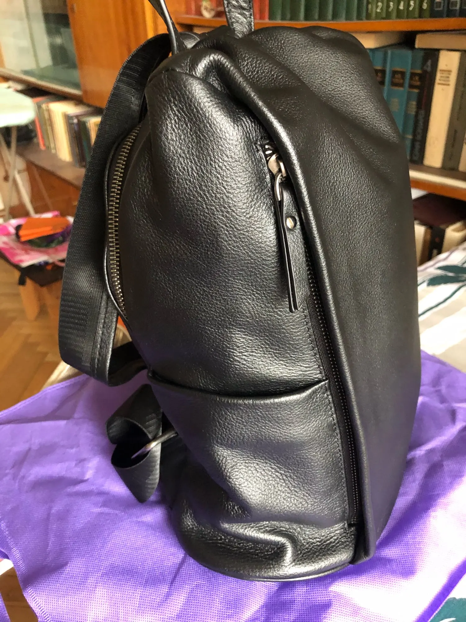 Идеальный рюкзак, кожа, все супер! Думаю, довольно вместительный, при этом выглядит аккуратно. Внутри качественная красивая отделка. Заказала из России, пришел за несколько дней курьером.