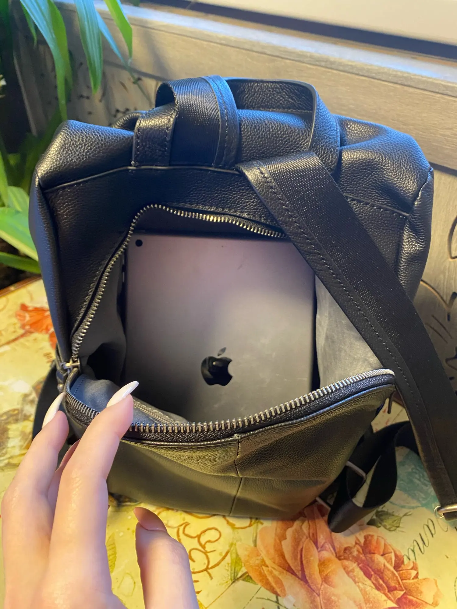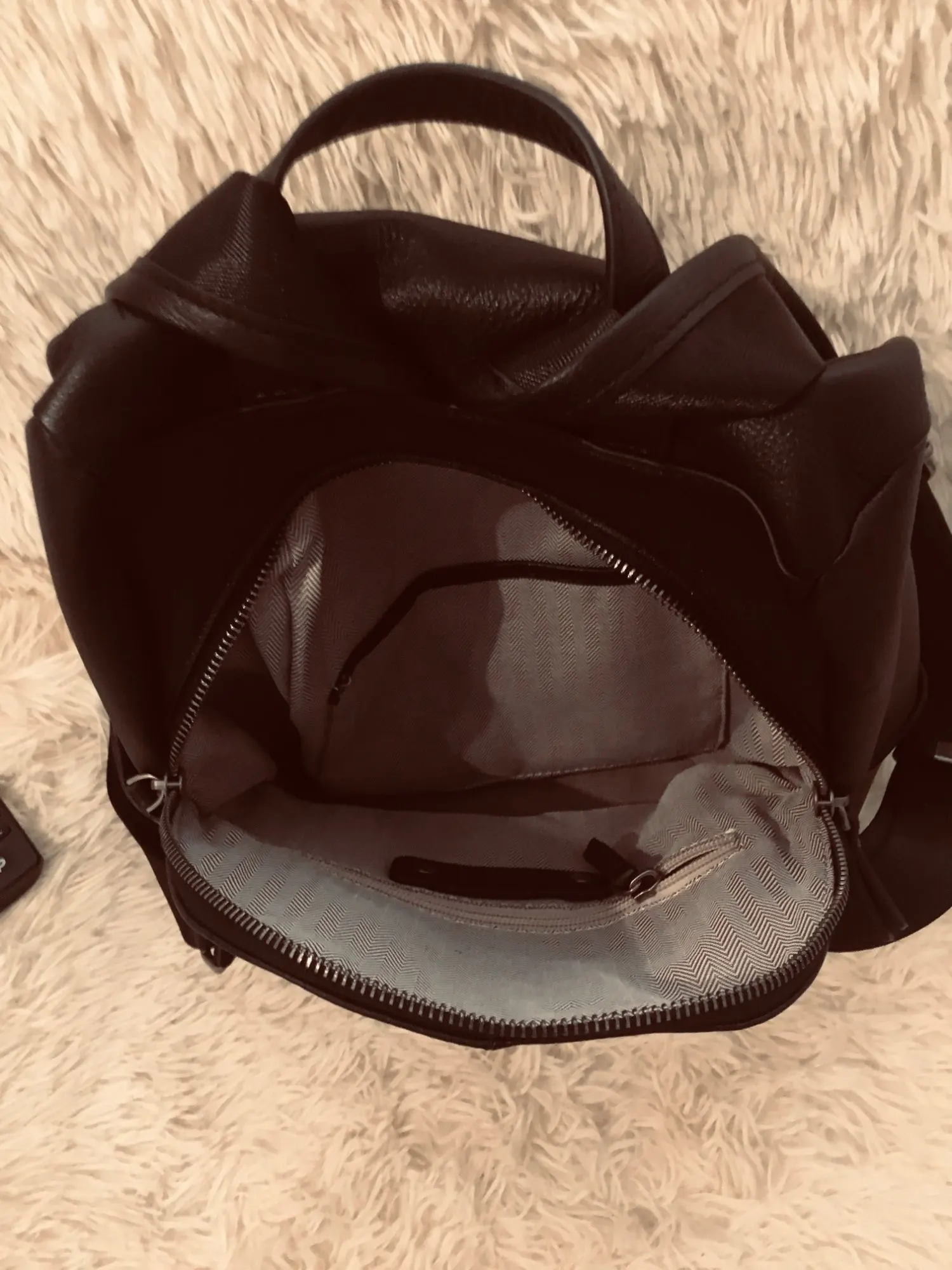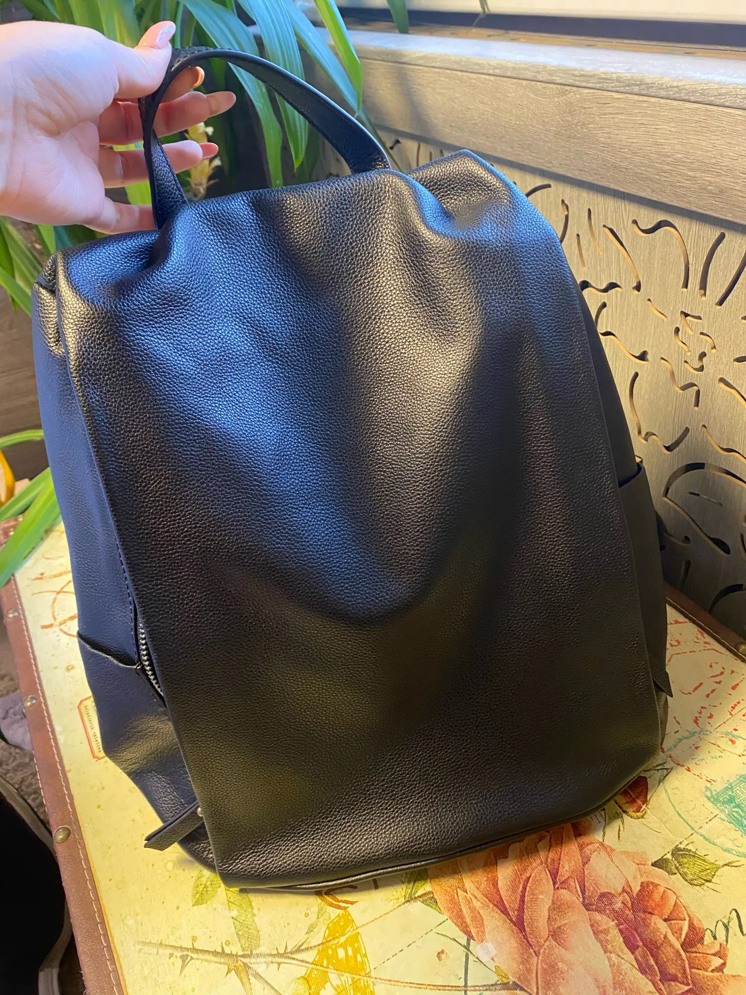 Идеальный рюкзак, кожа, все супер! Думаю, довольно вместительный, при этом выглядит аккуратно. Внутри качественная красивая отделка. Заказала из России, пришел за несколько дней курьером.