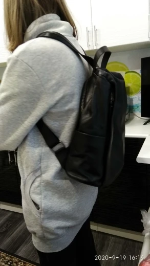 Я В ВОСТОРГЕ!!! Мечтала о таком рюкзаке очень давно))) 100% настоящая кожа, нежная и мягкая, пахнет кожей. Качественно прошито, добротная вечная фурнитура, надёжные швы, крепкая тяжёлая металлическая молния, очень крепкая подкладка. Суперский антивор: открыть основной отдел можно только со стороны спины, в глубине. Синтетические лямки с кожаной каймой в самых затираемых местах, что лично мне очень нравится, на века. Два открытых кармана снаружи по бокам, как для бутылочек или салфеток,вместительный наружный отдел, в основном отделе один средний кармашек на молнии и один открытый карман плюс небольшой ремешок на кнопке, для ключей или чего-нибудь, что можно пристегнуть. Очень вместительный, но компактный и аккуратный, мой любимый размер. Отлично смотрится и с кедами, и с рюкзаками. Пришёл очень быстро: чуть больше месяца, для нашей сельской глуши это почти рекорд)) Для меня идеальный вариант рюкзака абсолютно по всем параметрам!!! Лучше и быть не могло))) Спасибо за прекрасную работу