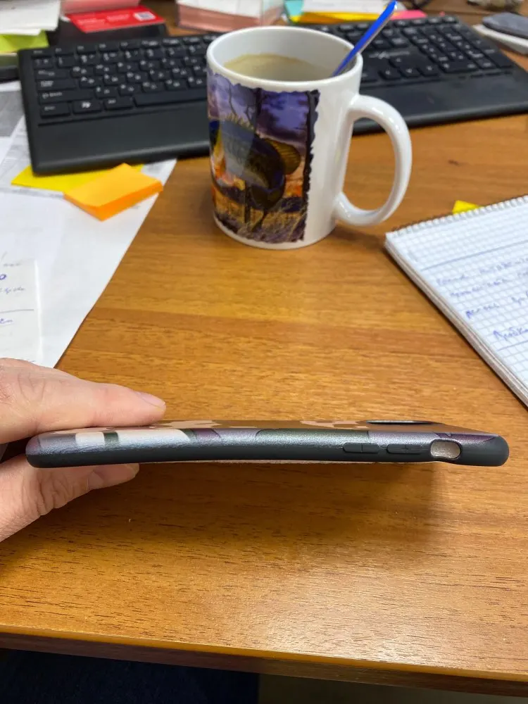 Сидит на телефоне как влитой, телефон держать удобно в чехле. Единственный момент, я думал он матовый, но рисунок блестит. В целом чехлом доволен! Рекомендую! Отправка быстрая.